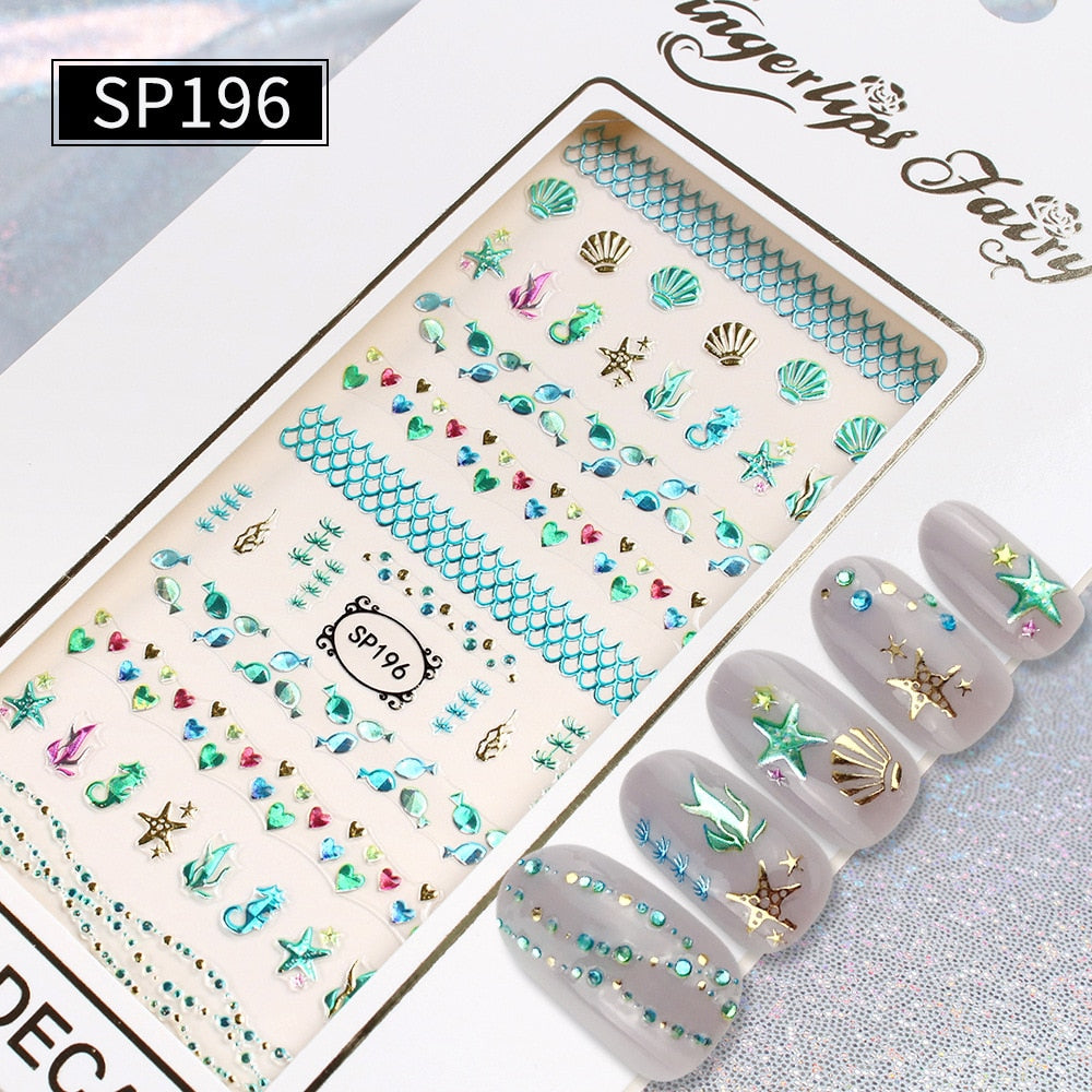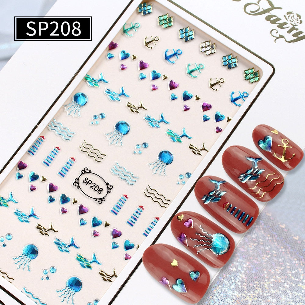 1pc Summer Ocean Whale Jellyfish 3D Self Adhesive Decal Blue Bronzing Manicure Decoration Silver Laser Sticker Beauty Tools