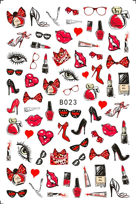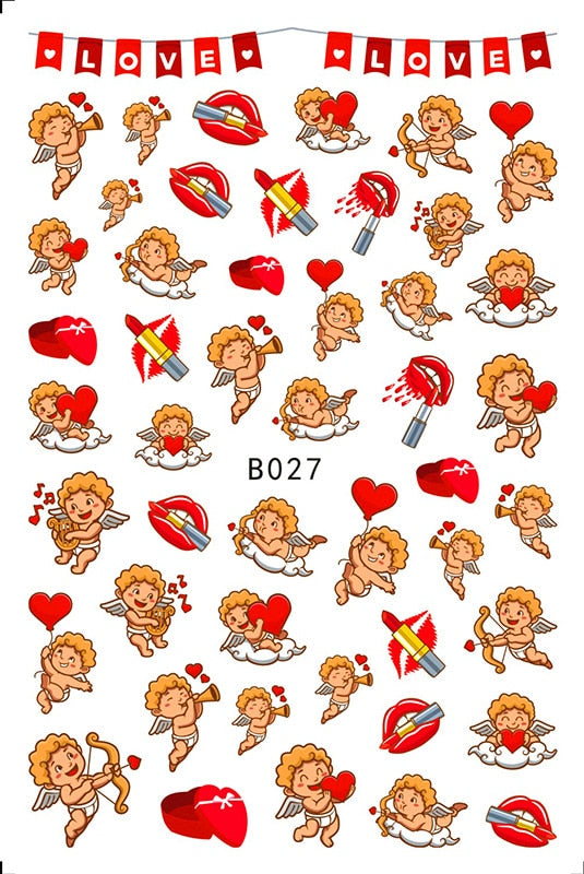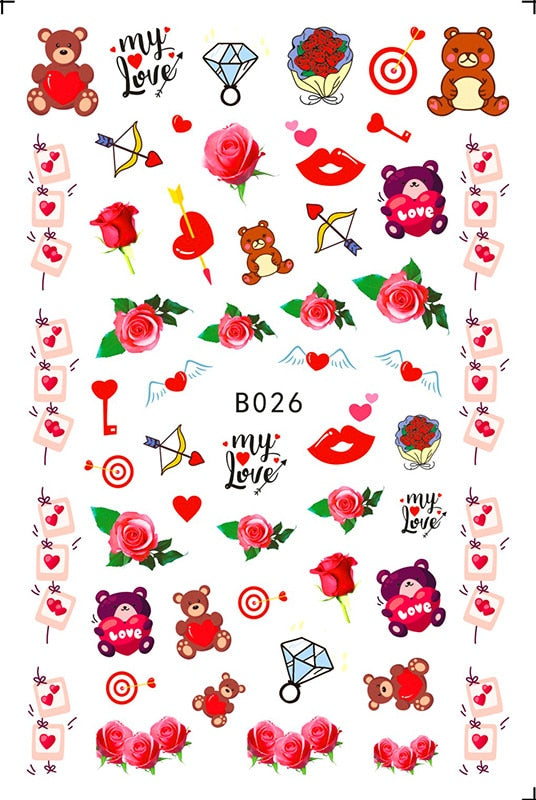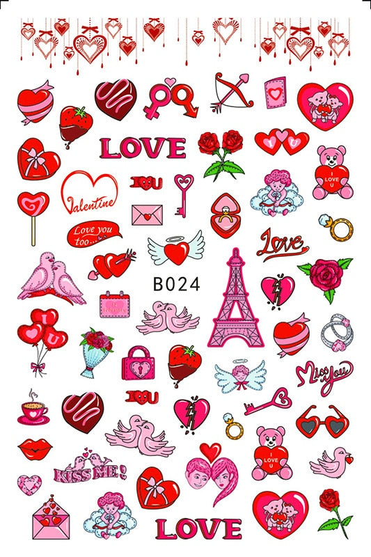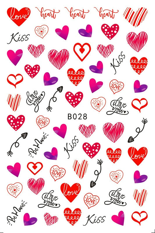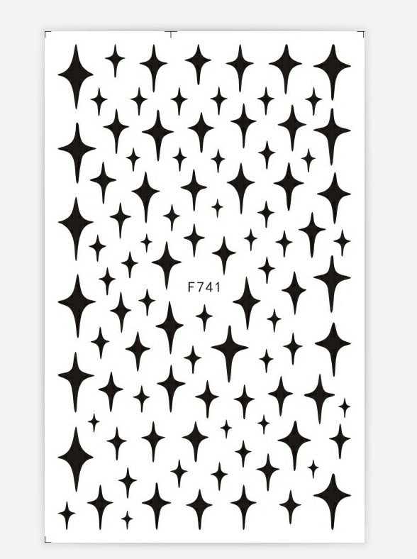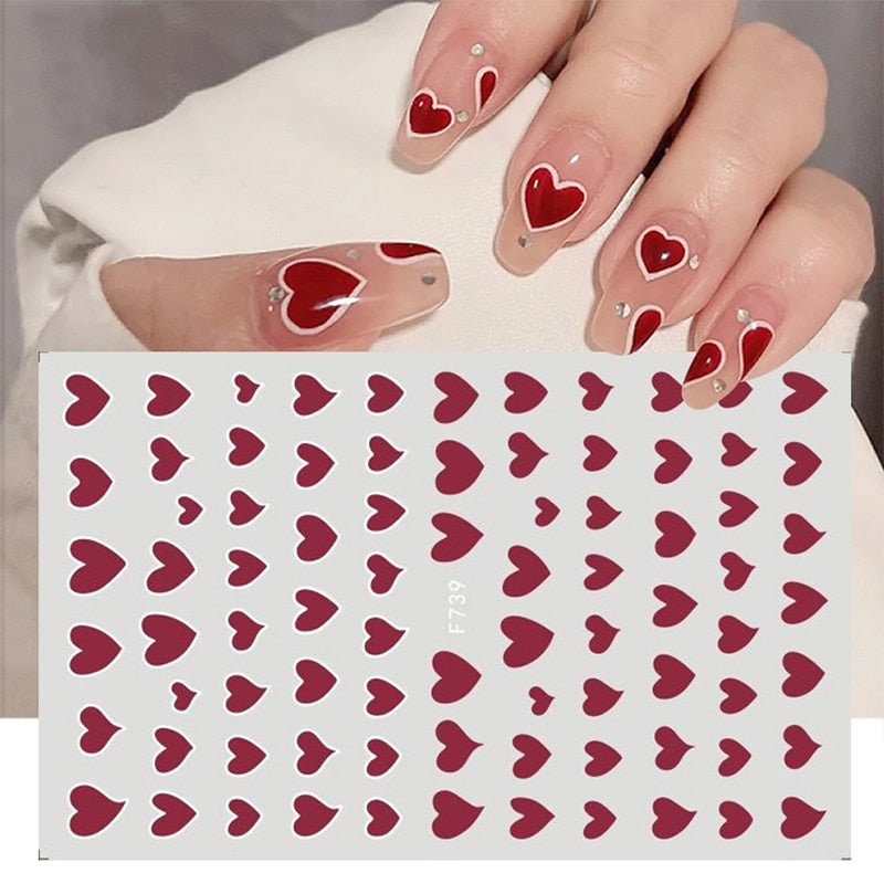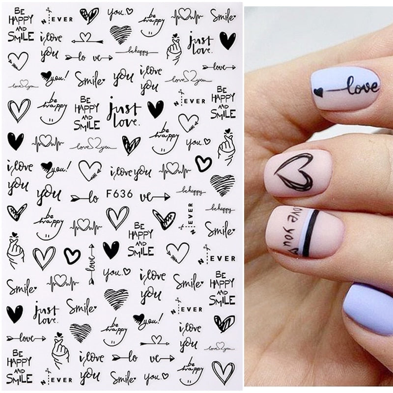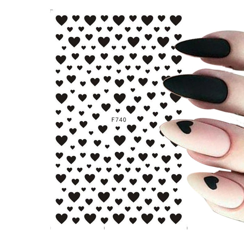 1pcs 3D Nail Sticker Black Heart Love Self-Adhesive Slider Letters Nail Art Decorations Stars Decals Manicure Accessories-Nail Inspo