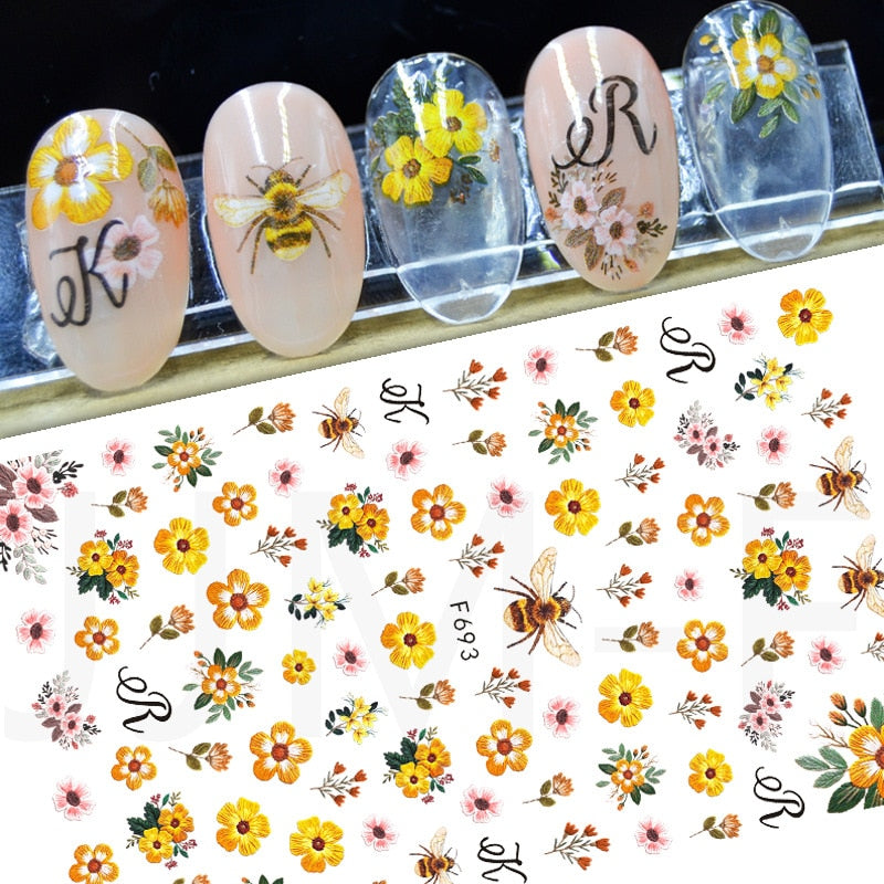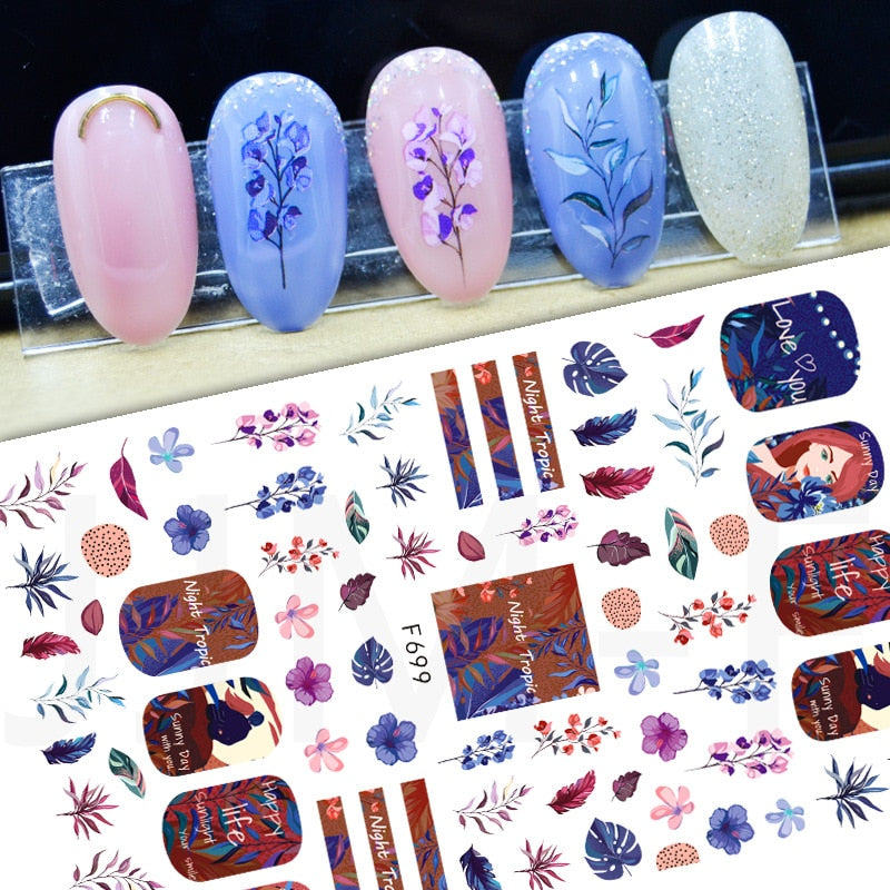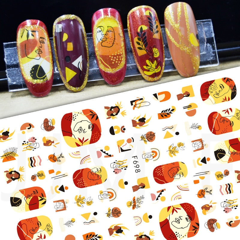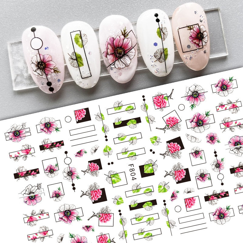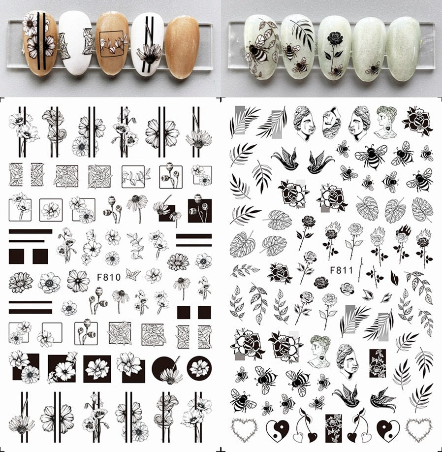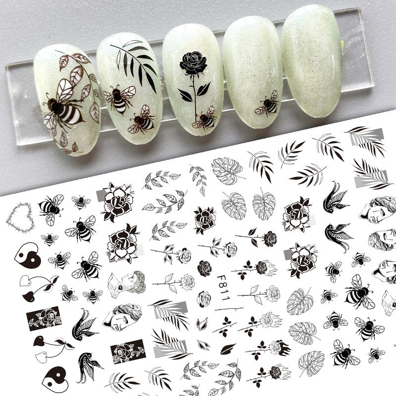 1pcs Black White 3D Nail Art Stickers Sliders Flowers Mandala Leaf Geometry Adhesive Nail Decals Foil Design Manicure-Nail Inspo