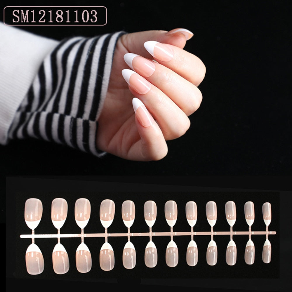 1set/24pcs French Fake Nails Matte /UV False Nail Detachable tips Nail Extension Manicure Art Press On Fake False Nails Beauty-Nail Inspo