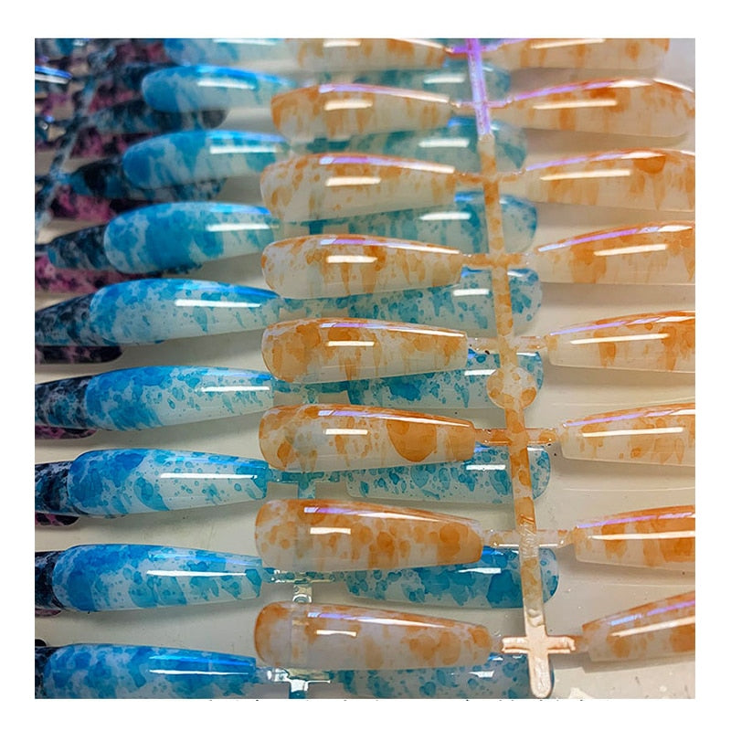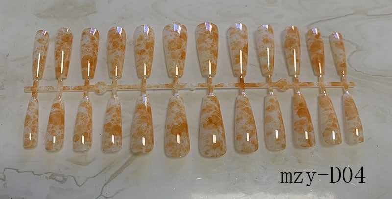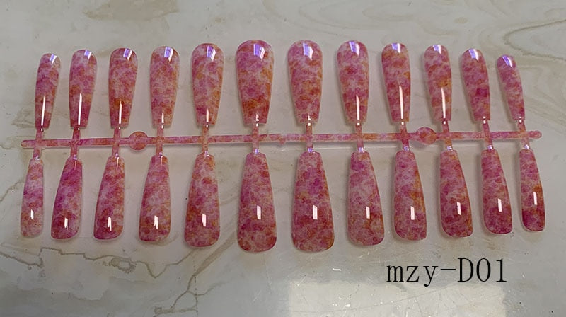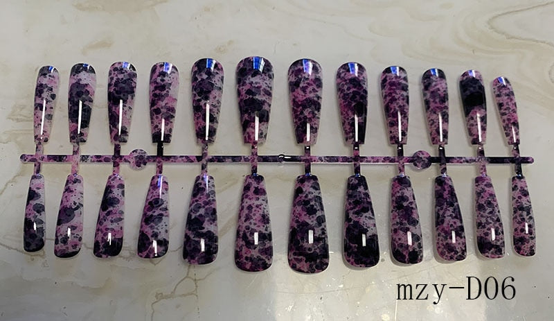 1set/24pcs Long Ballet Coffin Fake Nails Color Press On Nail Tips Removable Varnish Manicure Glue Style Ladies Decorations-Nail Inspo