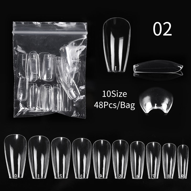 20/60Pcs Extension False Nail Tips Full Cover Sculpted Nail Tips Fake Finger UV Gel Polish Assistant Tools Quick Building Mold-Nail Inspo