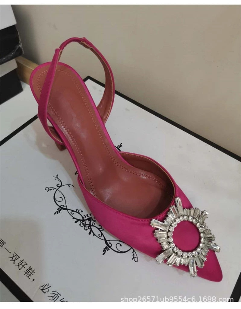 2021 banquet thick-heeled solid color large size low-top high-heeled suede pointed red fashion sandals