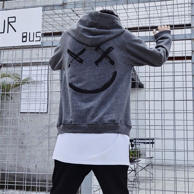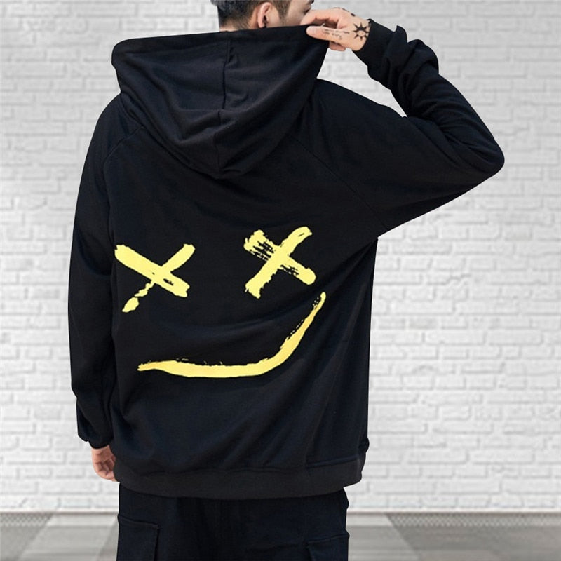 2021 Women Smile Printied Hoodies Hip Hop Patchwork Couple Pullovers Korean Fashion Loose Long Sleeve Casual Sweatshirts