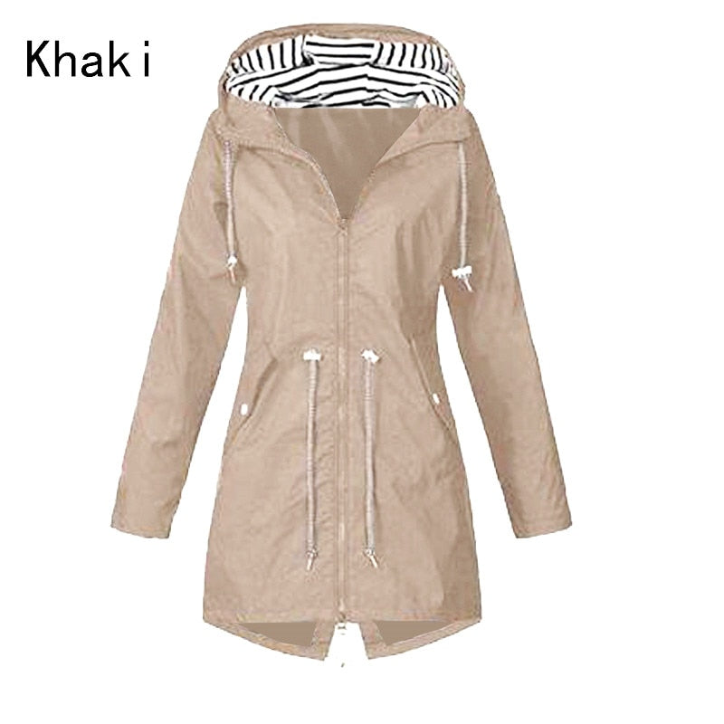 2021 Women's Long Windproof Hooded Coats Autumn Winter Trench Casual Fashion Outdoor Raincoat Waterproof Solid Camping Jackets