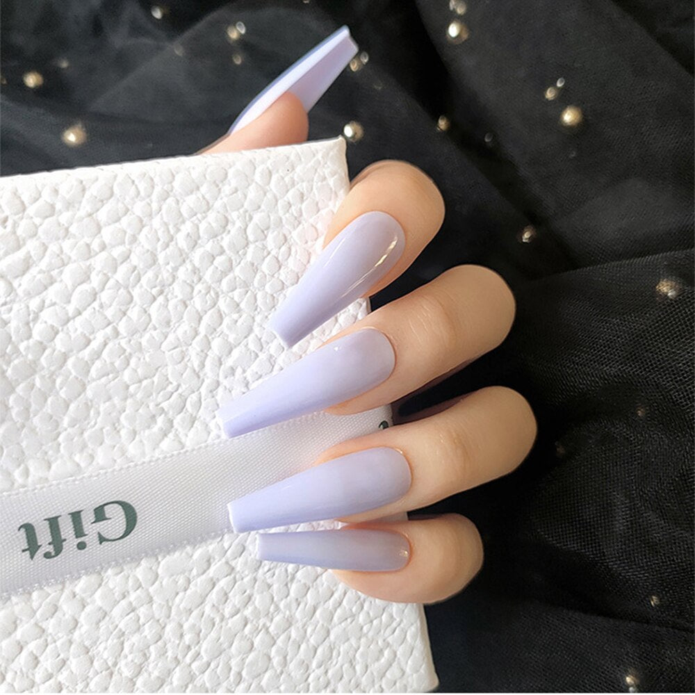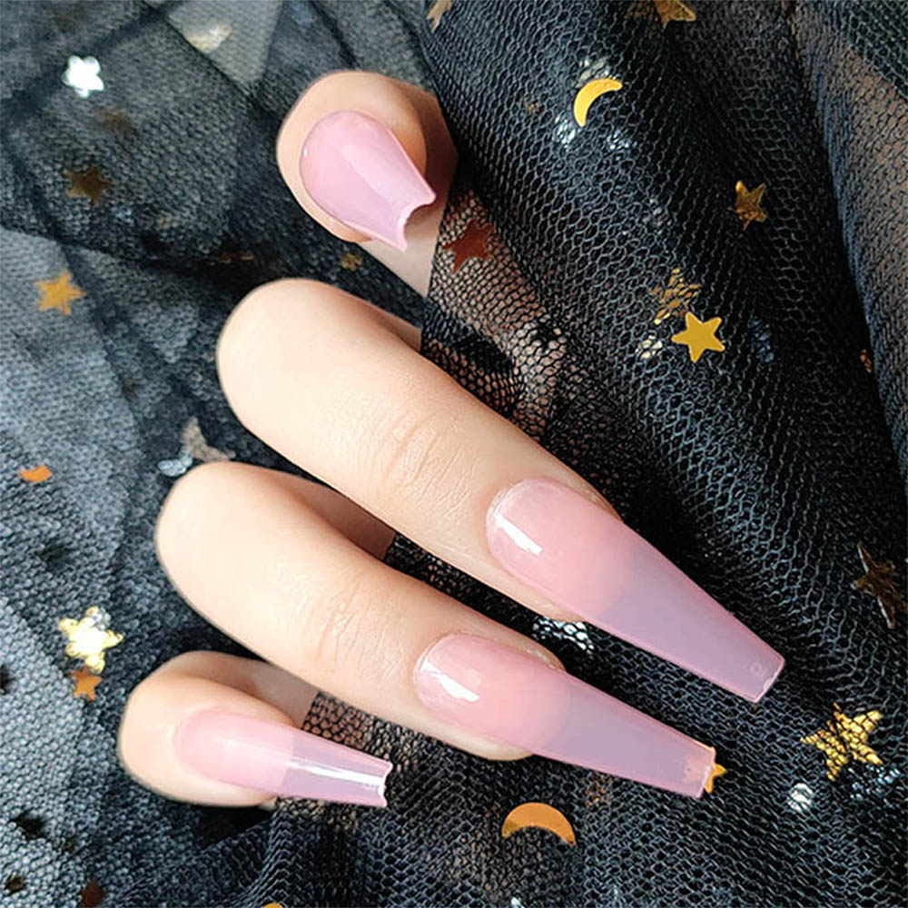 20pcs/box False Nail Tips Clear pink color long Ballerina False Nails detachable Press on Nails Art Full Cover Fake nail Sticker-Nail Inspo
