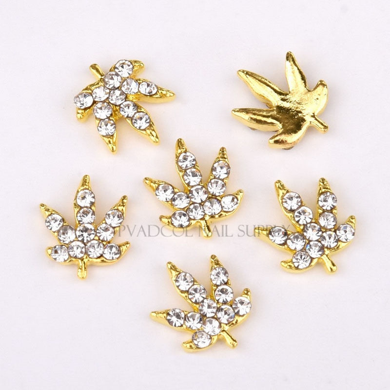 20pcs Weed Leaf Nail Charms Gold Glitter 3D Nail Art Rhinestone Alloy Luxury Nails Press On Manicure Decoration-Nail Inspo