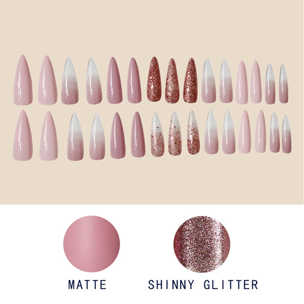 Easy to Use:Nude ballerina fake nails with glue strcker can get your favorite manicure in just 5 minutes without waiting at the nail salon.