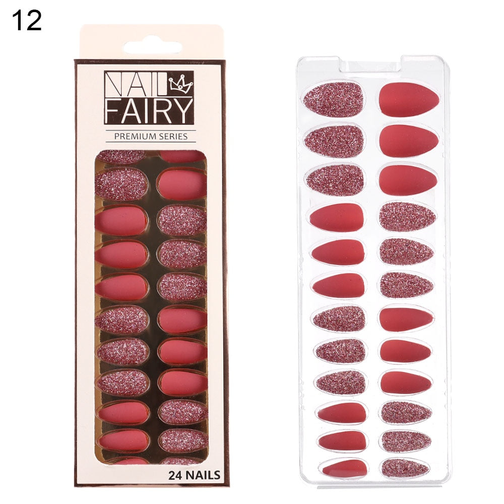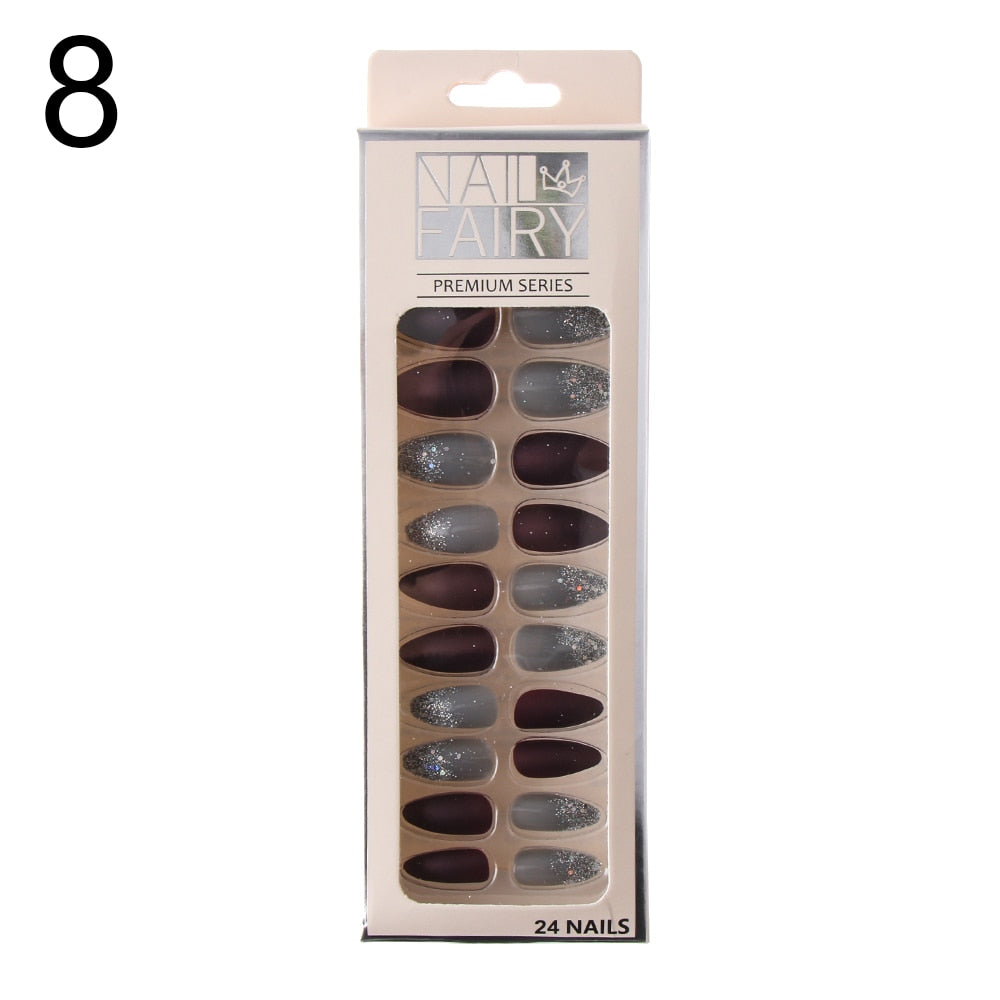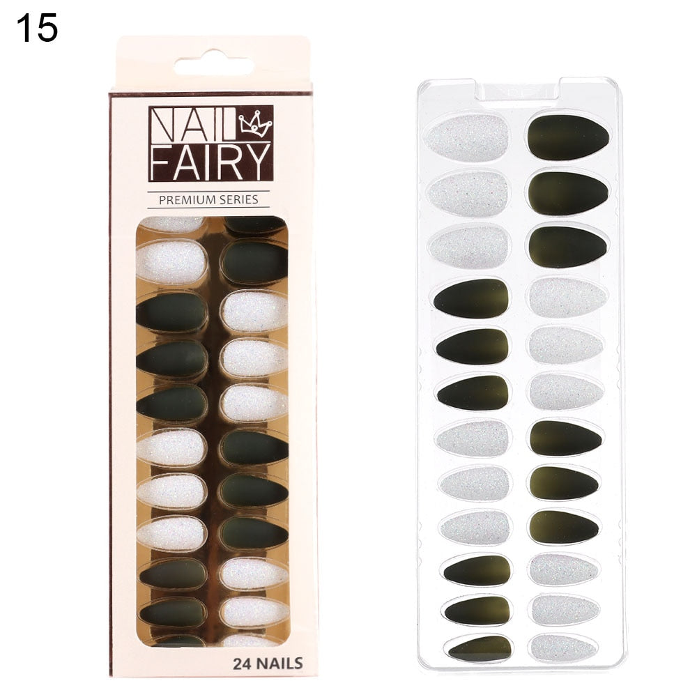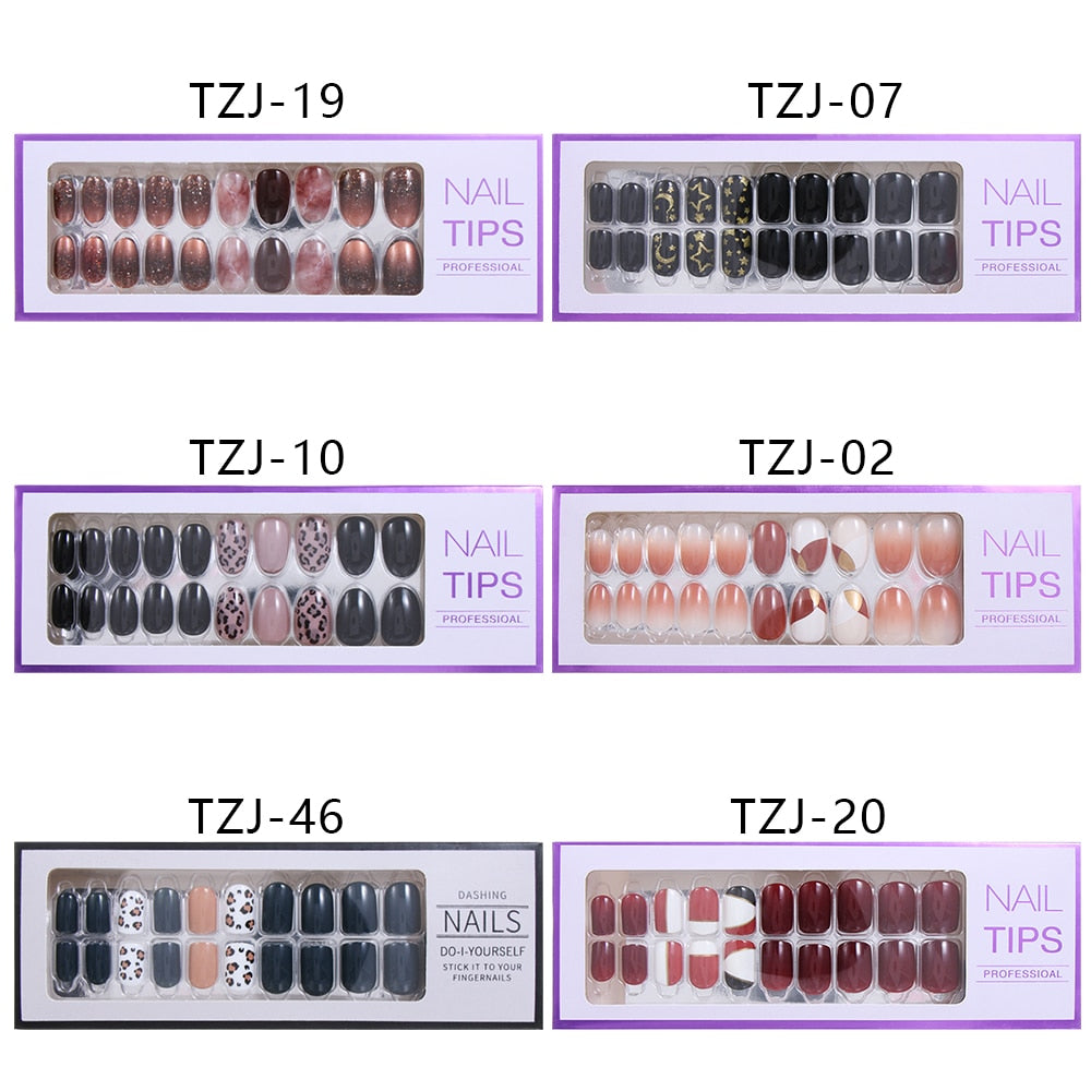 24/30Pcs/Set Reusable False Nail Tips Set Full Cover Shiny Matte Nail Tips With Designs Press On Nails Art Fake Extension Tips-Nail Inspo