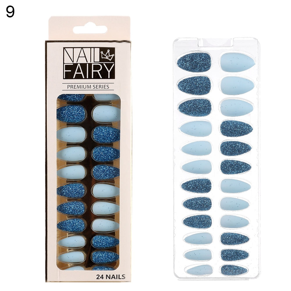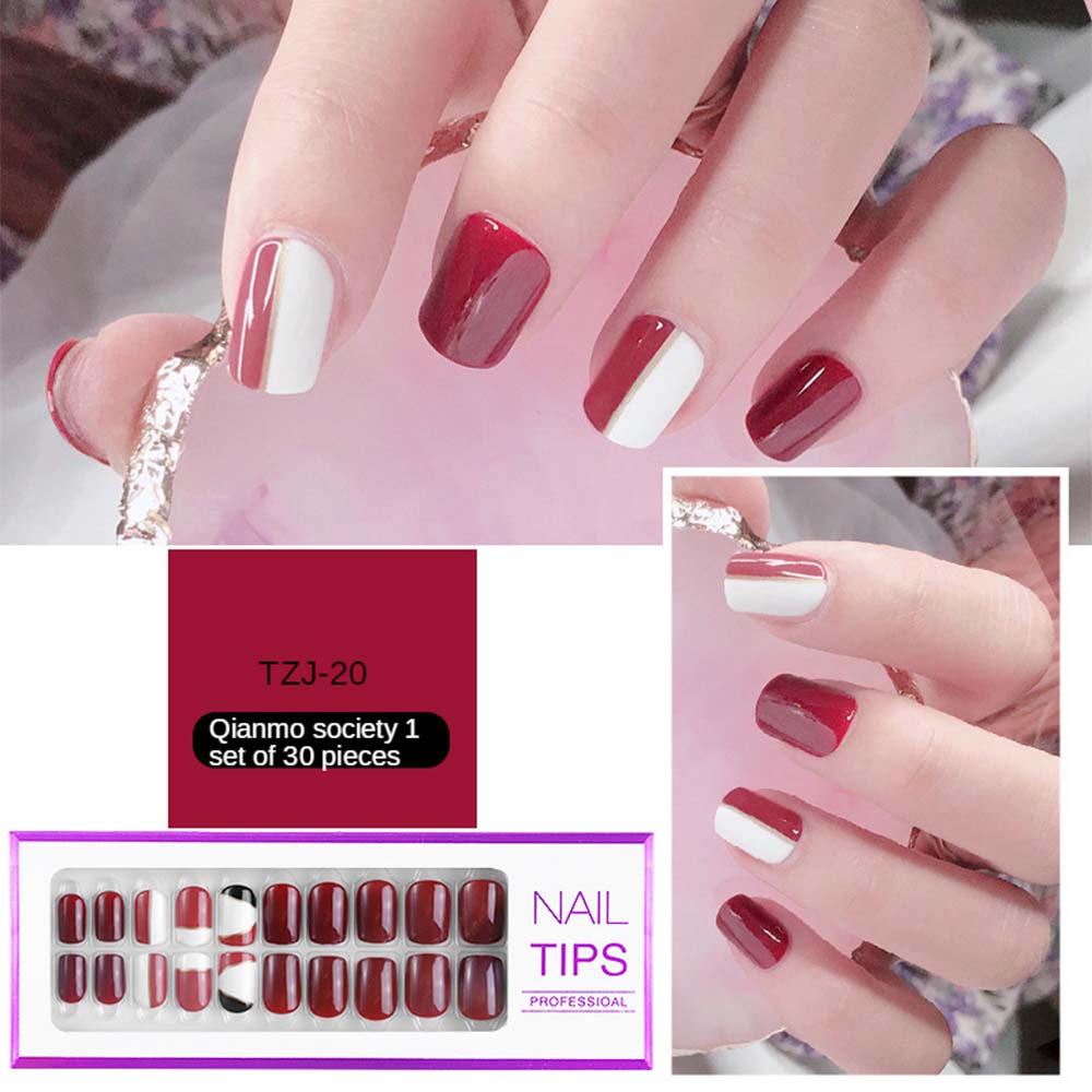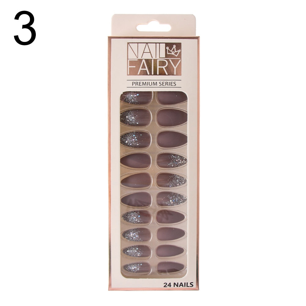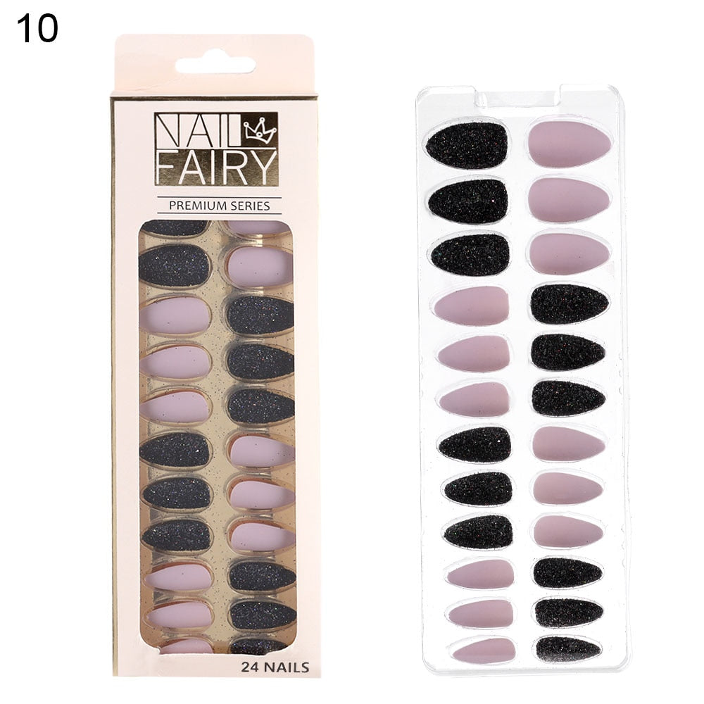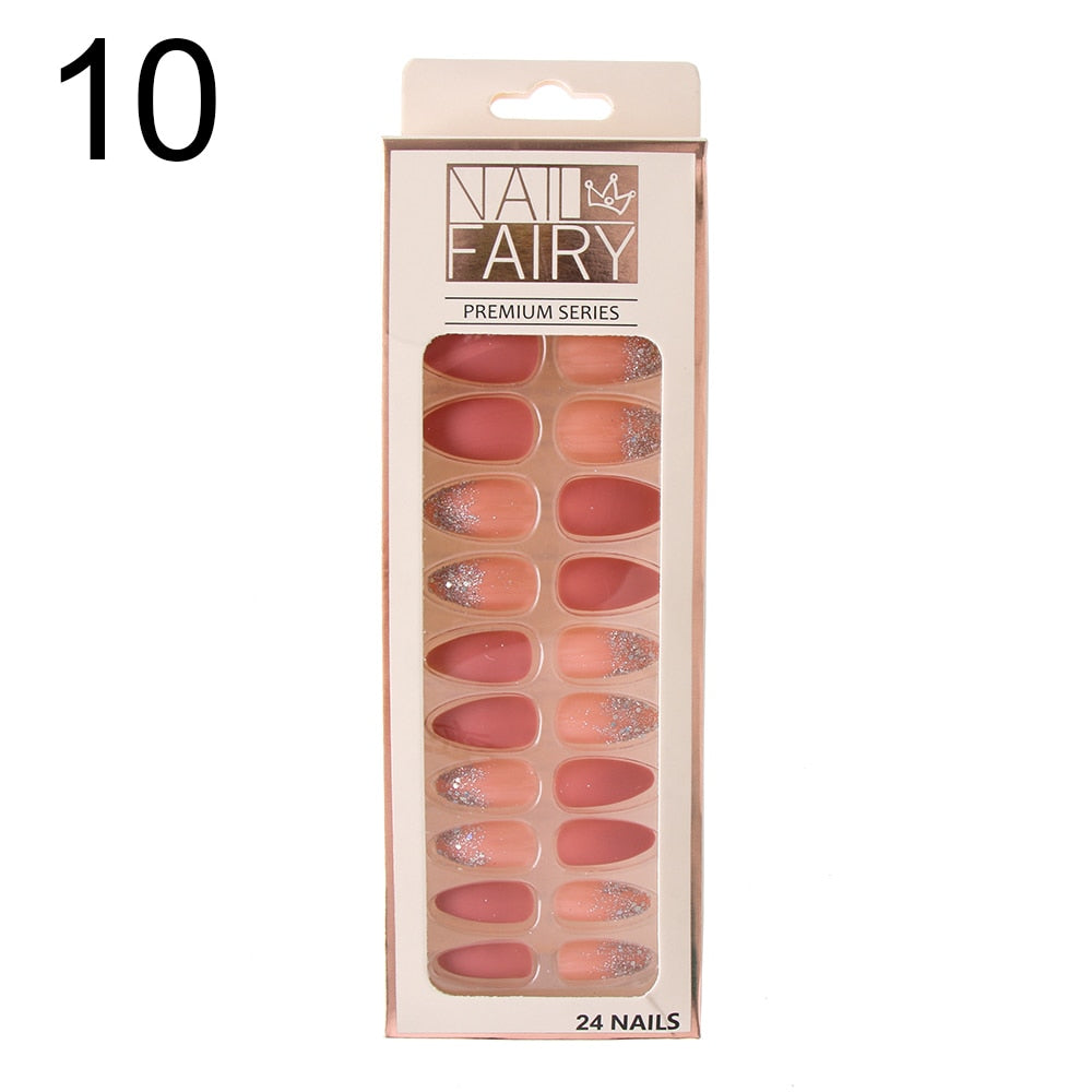 24/30Pcs/Set Reusable False Nail Tips Set Full Cover Shiny Matte Nail Tips With Designs Press On Nails Art Fake Extension Tips-Nail Inspo