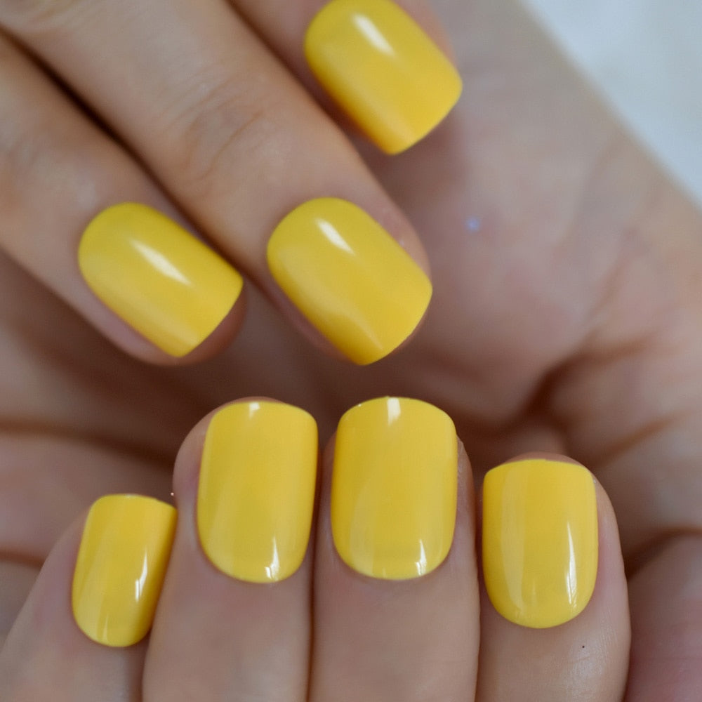 24/PCS Oval Short False Nails Pure Yellow Color Wholesale Short Nail Art Fake Nails Tips Full Cover Charming Fashion-Nail Inspo