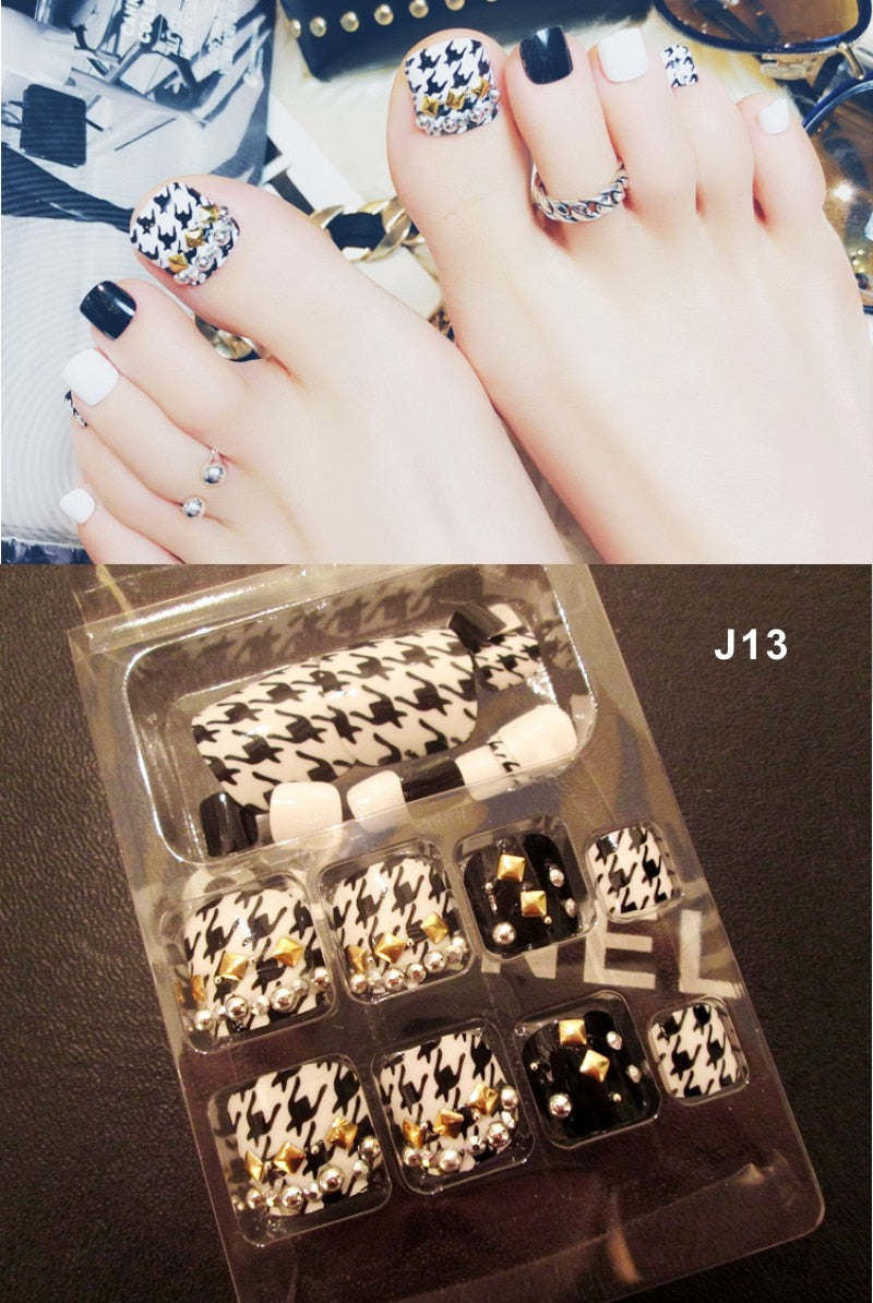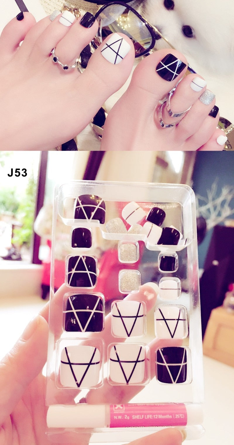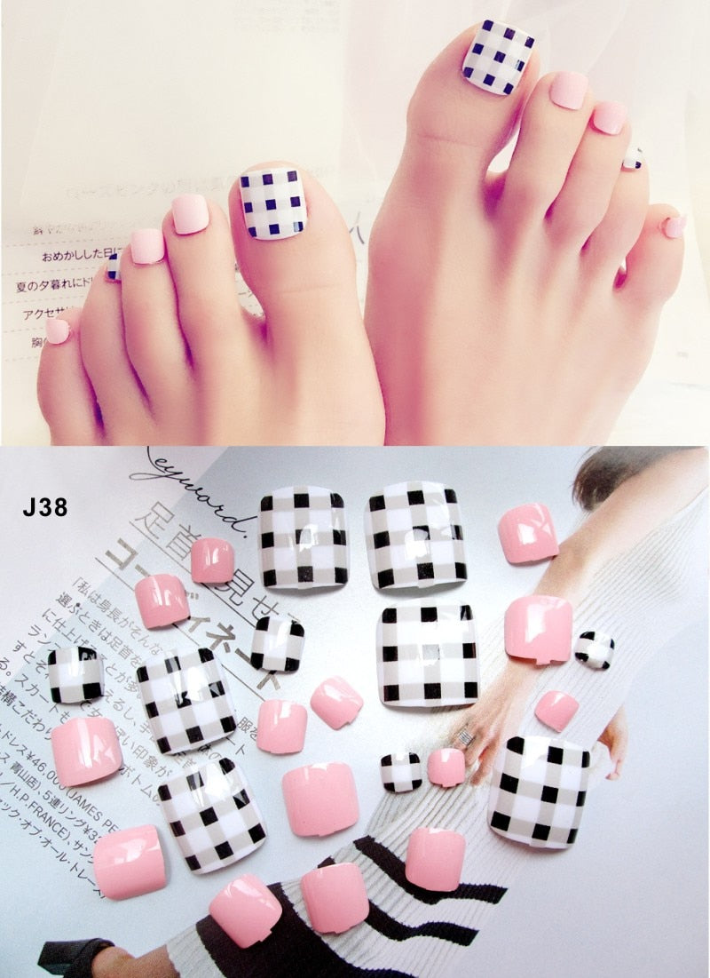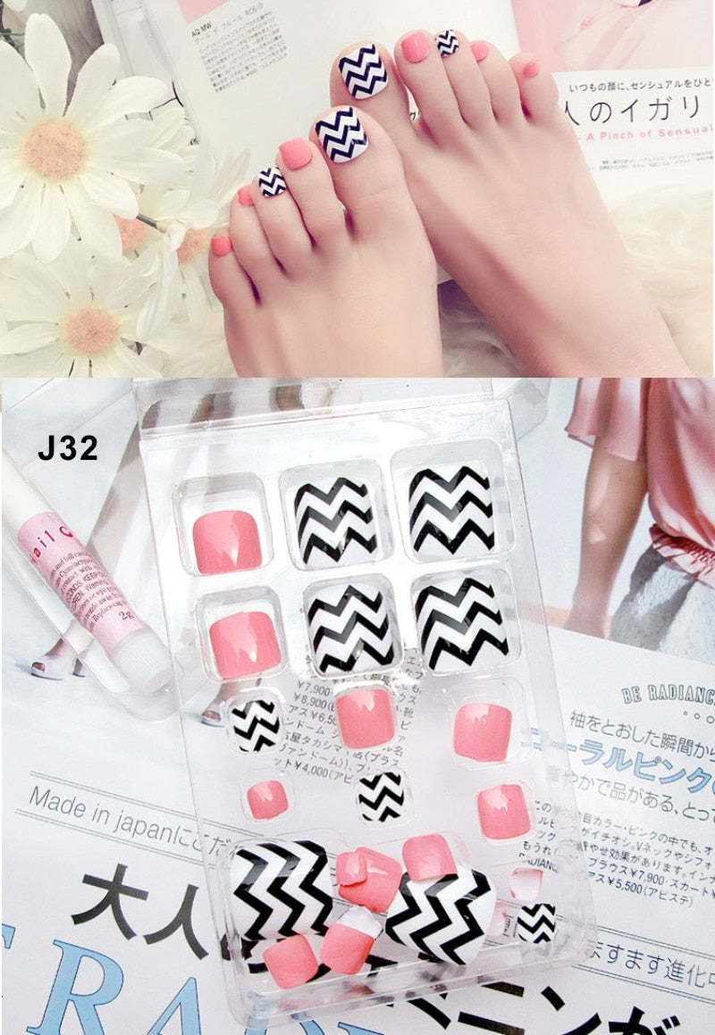 24 Pcs/Set Fresh Style Toe Fake Nails 3D Foot Full Toes Nail Art Tips False Nails  for Lady Girls Toenails Press on Nail-Nail Inspo
