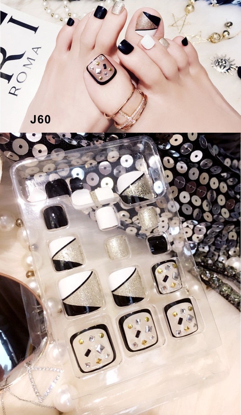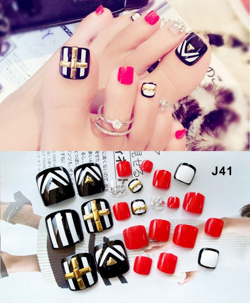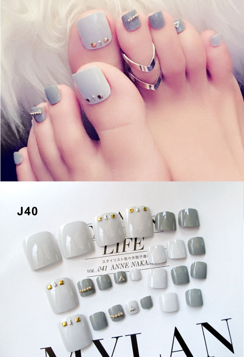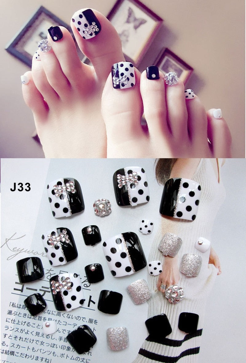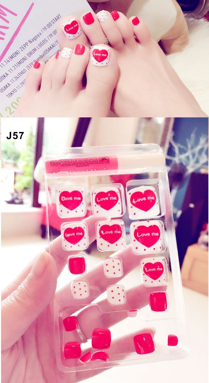 24 Pcs/Set Fresh Style Toe Fake Nails 3D Foot Full Toes Nail Art Tips False Nails  for Lady Girls Toenails Press on Nail-Nail Inspo