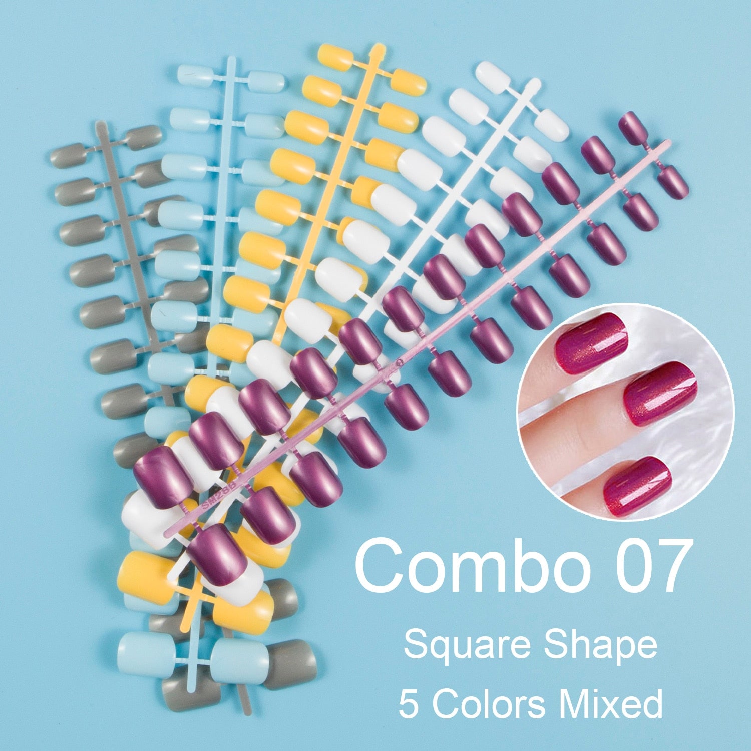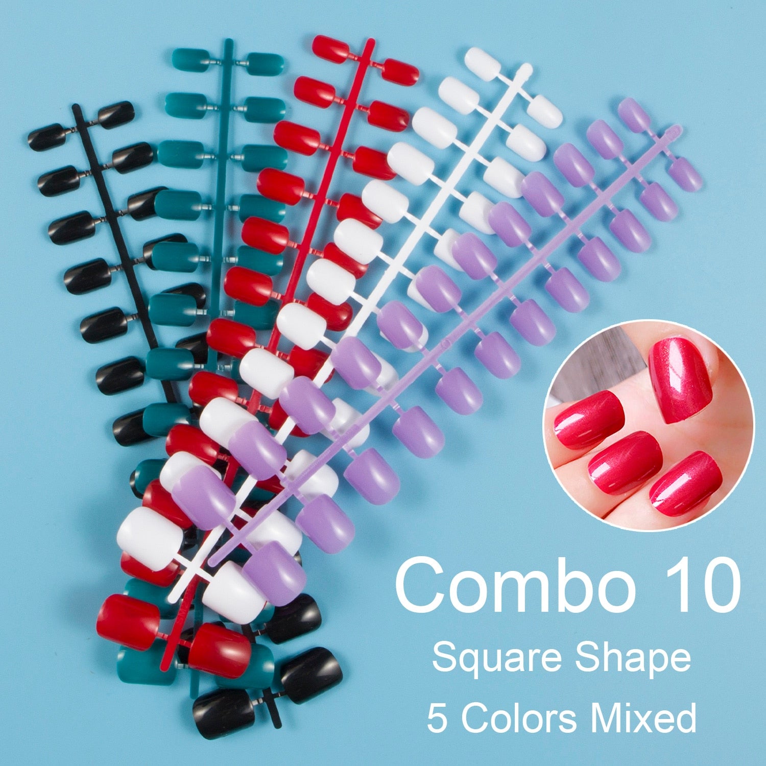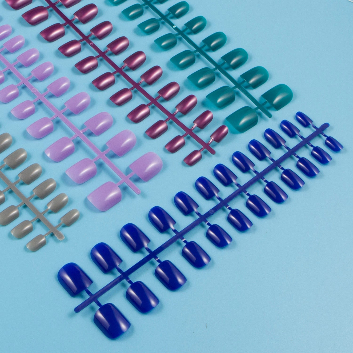24 Pieces/Set, 5 Sets Mixed Colors Short Square False Nail Tips Press on Fake Nail Tips 10 Sizes Full Cover Nails Combo 09-Nail Inspo