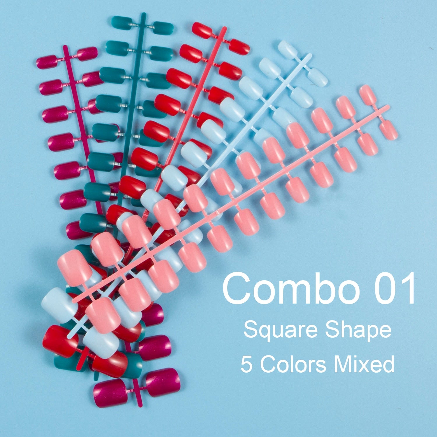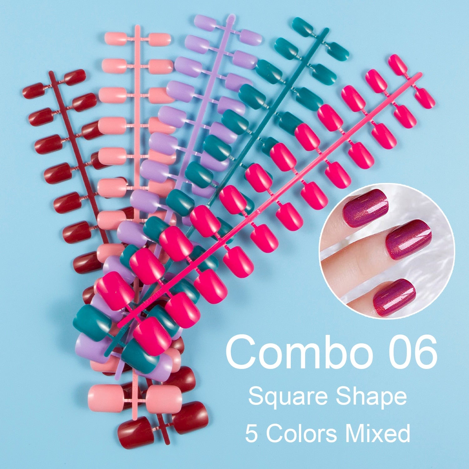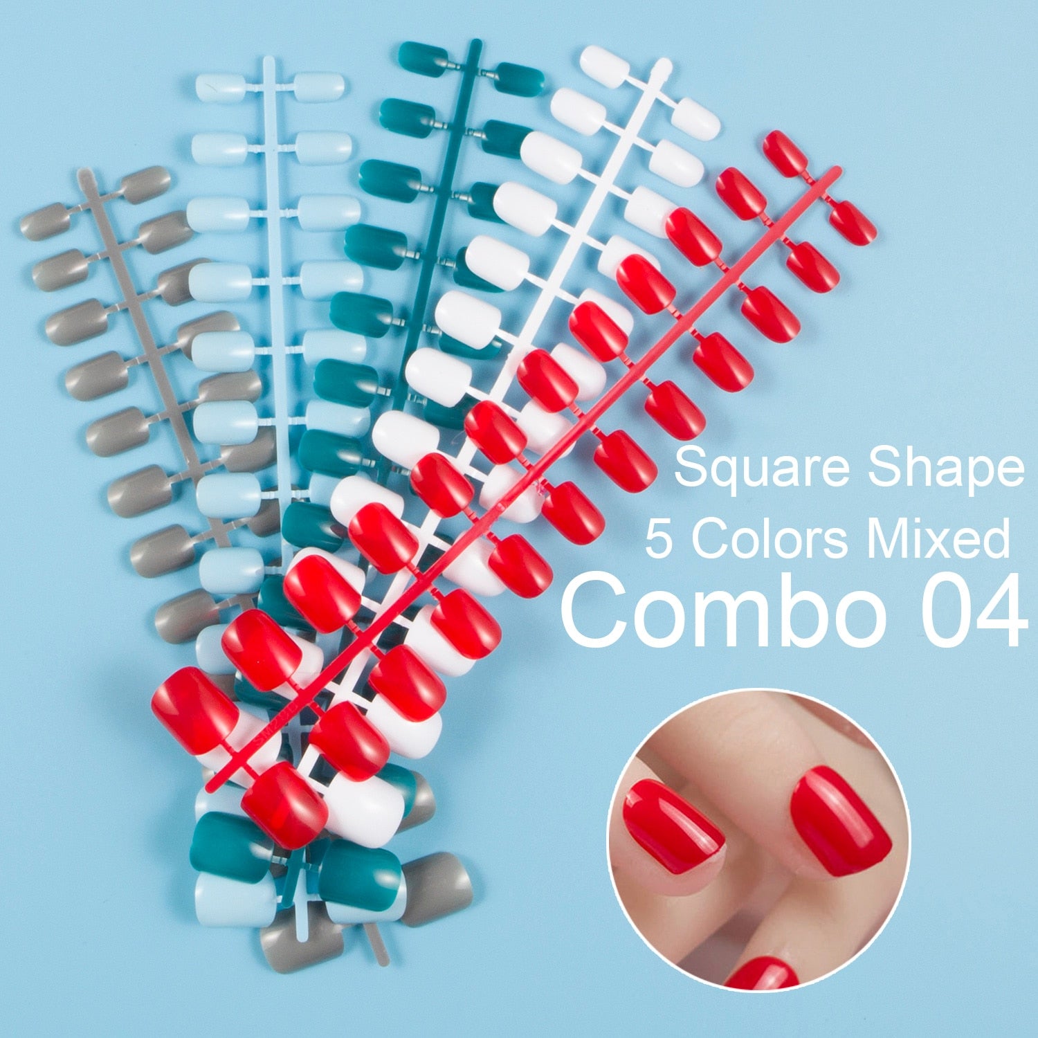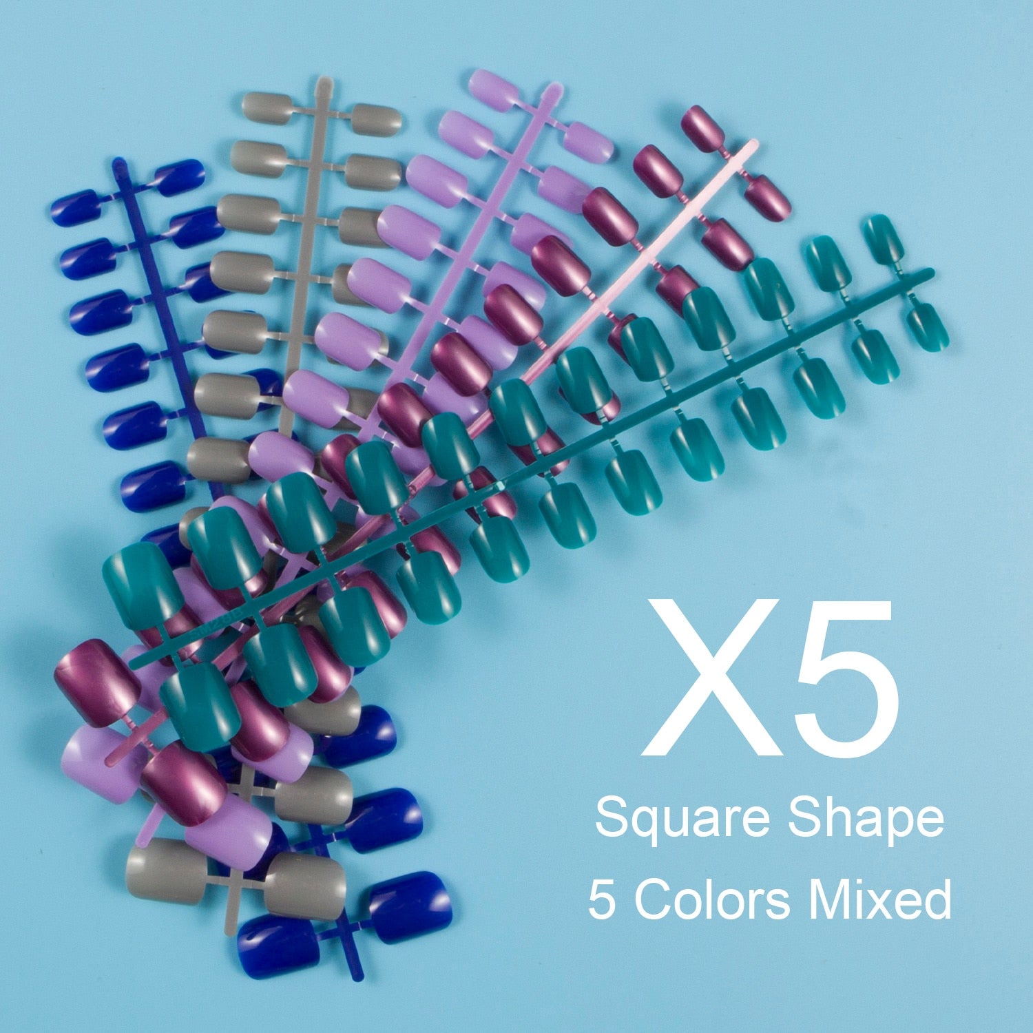 24 Pieces/Set, 5 Sets Mixed Colors Short Square False Nail Tips Press on Fake Nail Tips 10 Sizes Full Cover Nails Combo 09-Nail Inspo