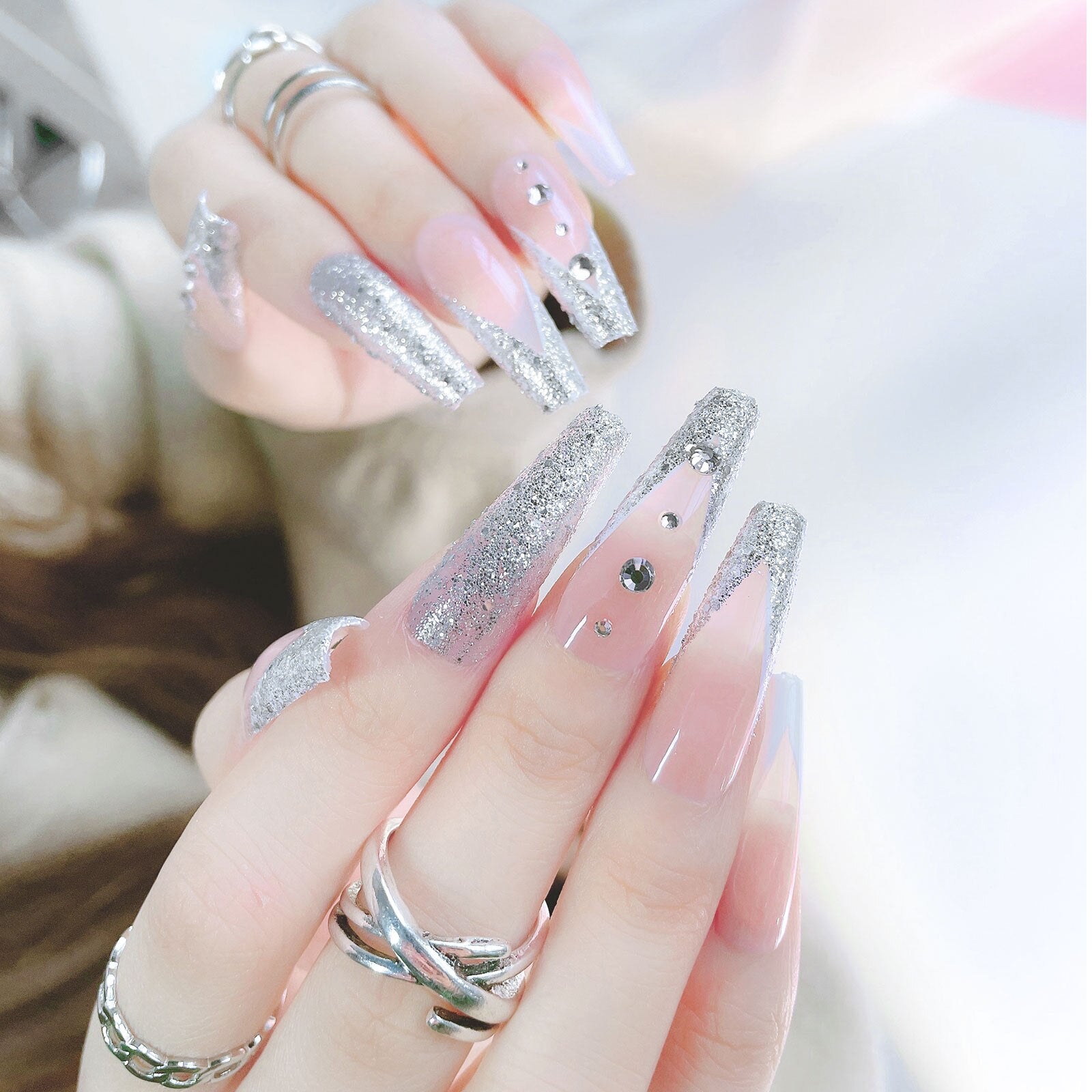 - Choose a suitable size of adhesive stickers or nail glue for your nails and stick it on your nails.