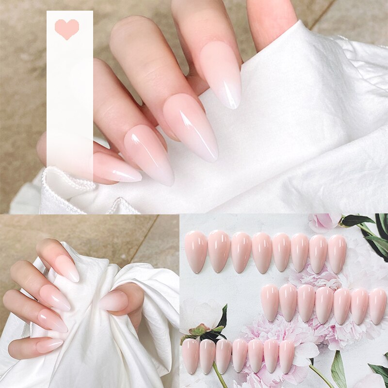 24pcs acrylic nail tips Ombre  Pearl Pink Fake Nail Super Long Stiletto Full Cover Color Glossy Acrylic Nail Kits Sets with Glue-Nail Inspo