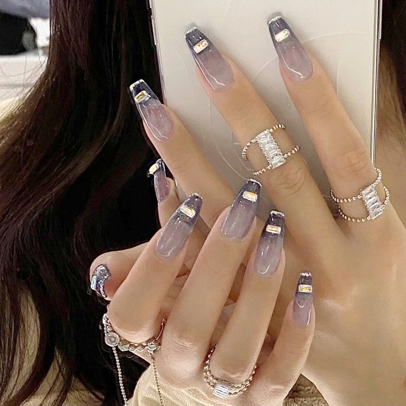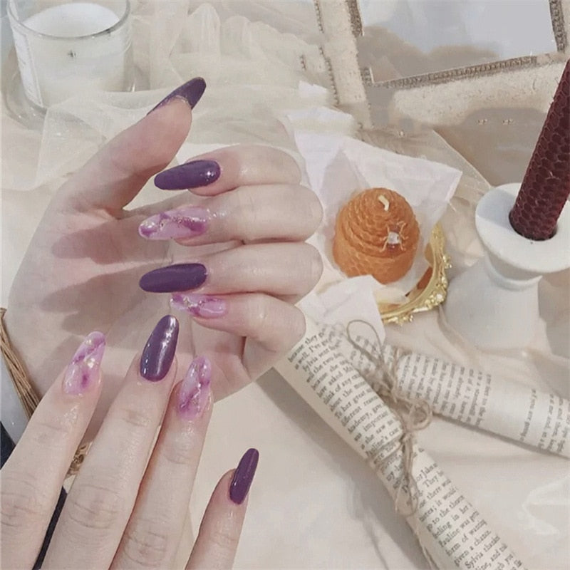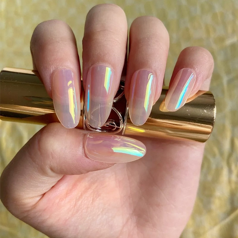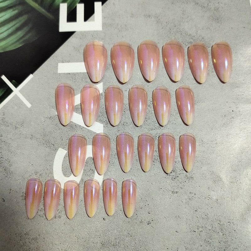 24pcs Aesthetic Northern Lights stiletto nail tips Simple Fashion Lasting Fake Nails Wearable Full Cover Finished Fingernails TY-Nail Inspo