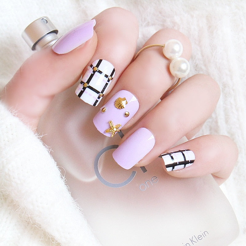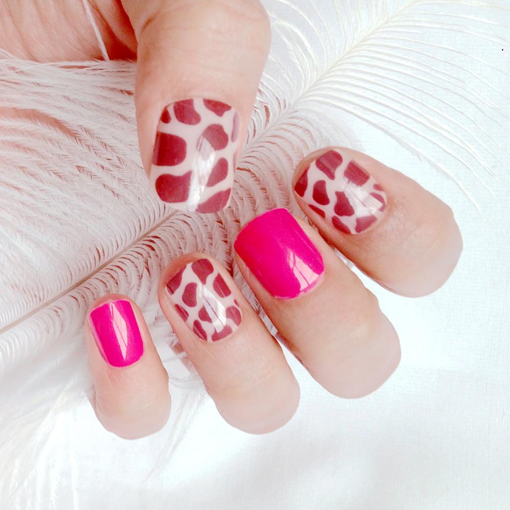 - Choose a suitable size of adhesive stickers or nail glue for your nails and stick it on your nails.