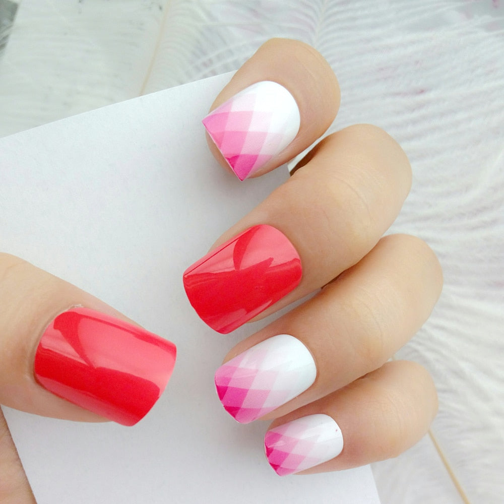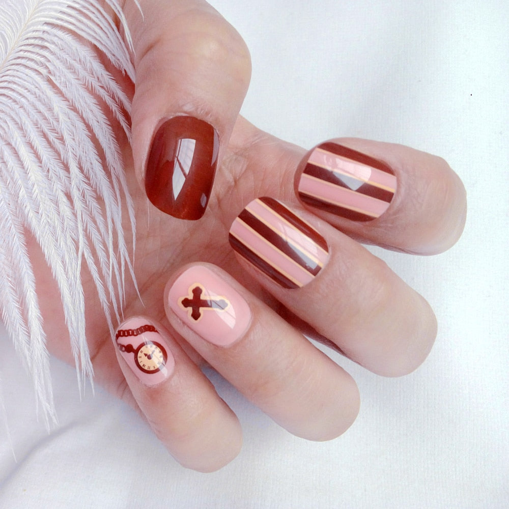 Looks cute on my nails. I had to adjust them according to my nail sizes. The glue fixed them tightly to the nail so far( the second day yet). I applied some top coat for extra shine.