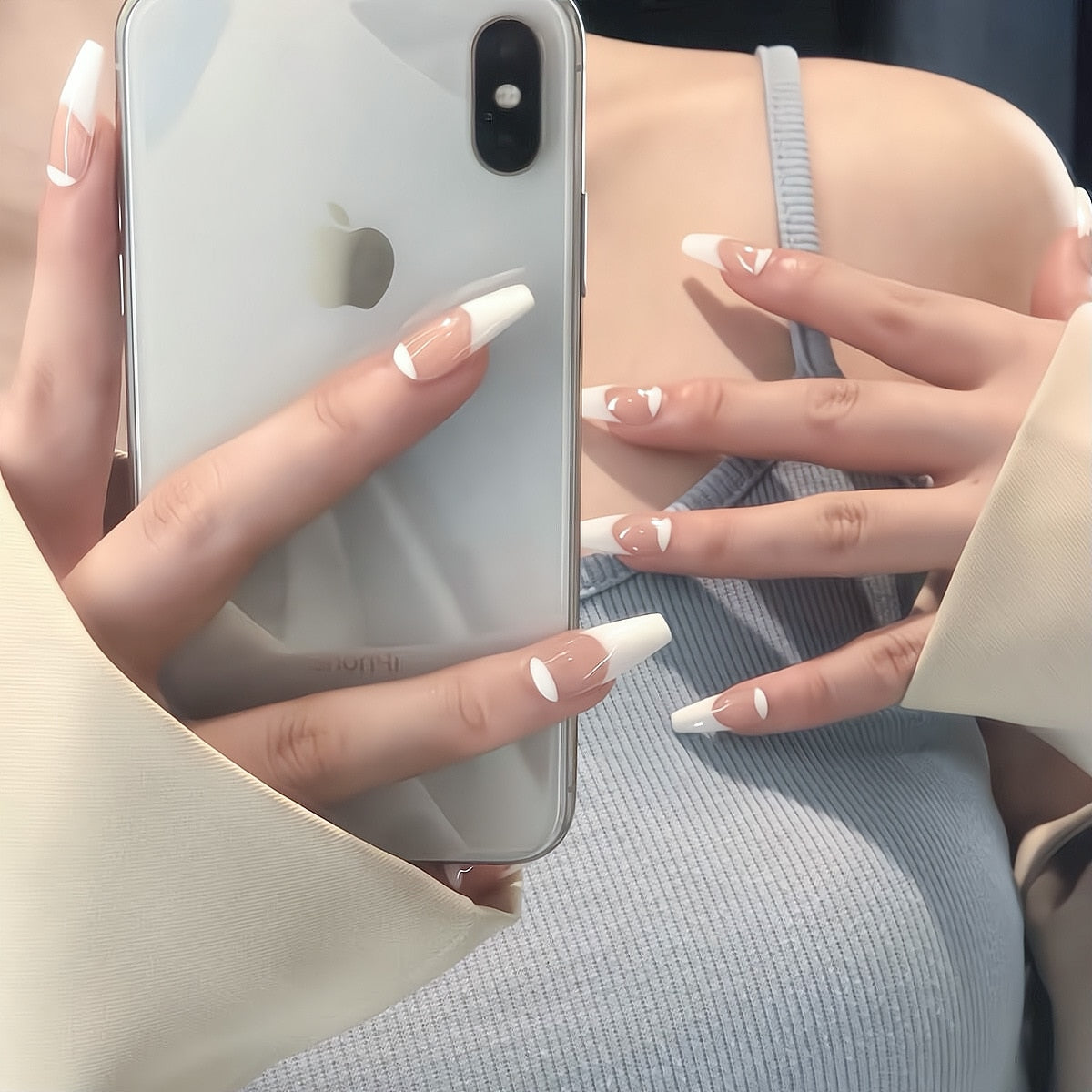 24pcs Ballerina nails sticker White color False nails removable Manicure patch pre design acrylic tips nails free shipping-Nail Inspo