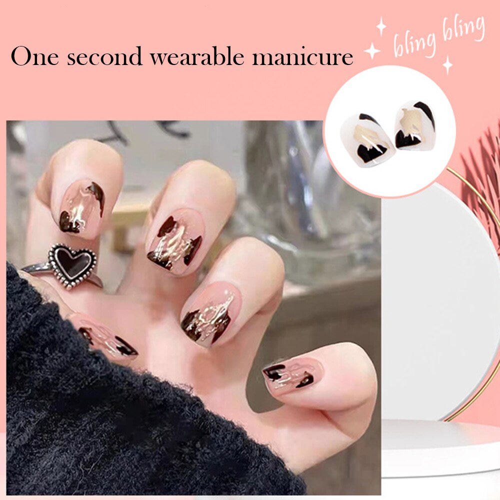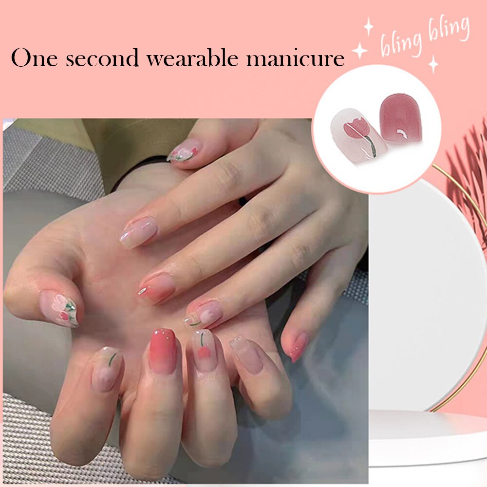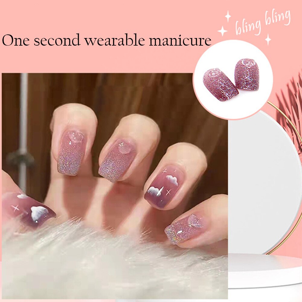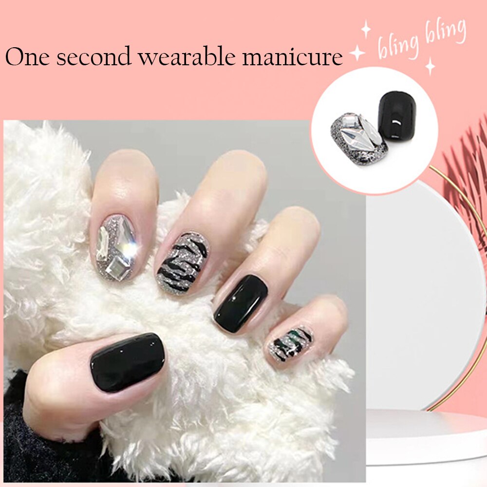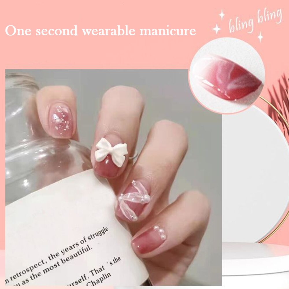 - Choose a suitable size of adhesive stickers or nail glue for your nails and stick it on your nails.