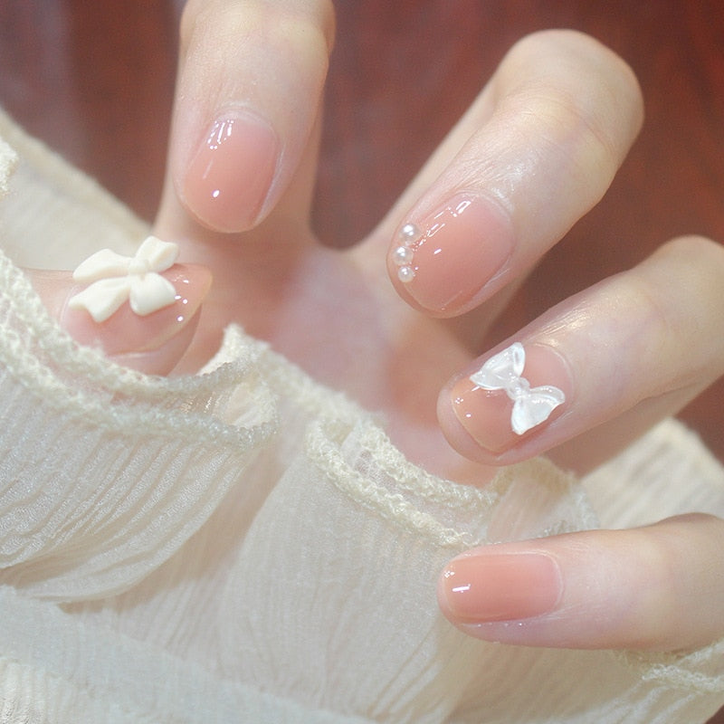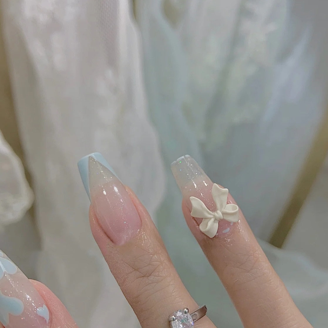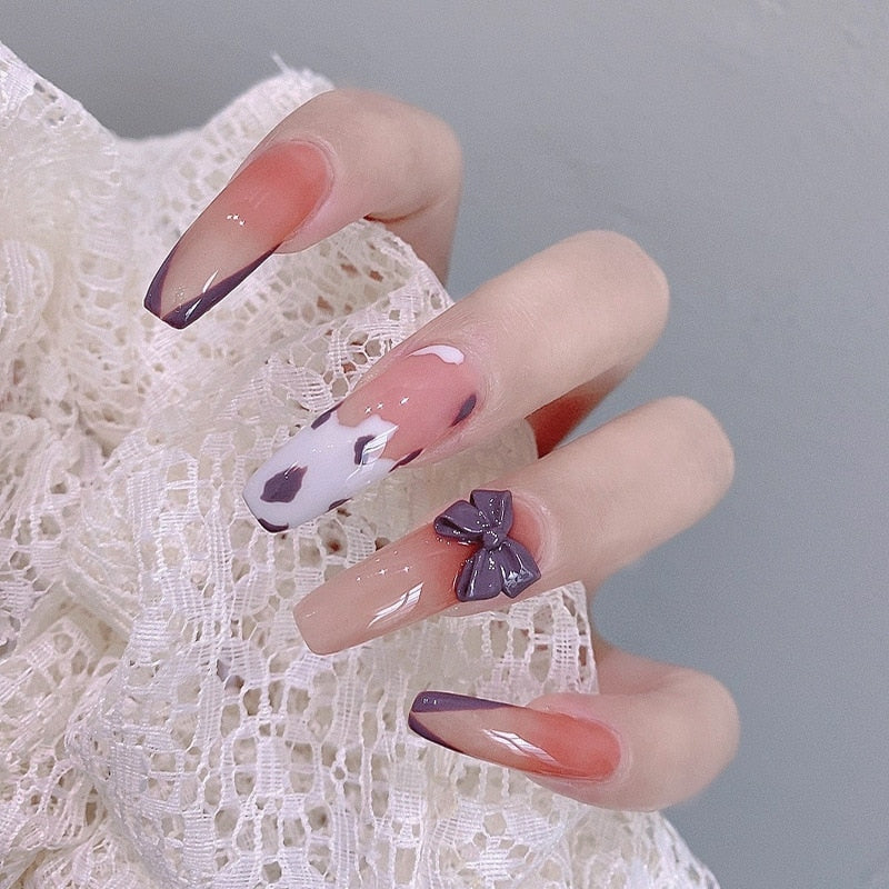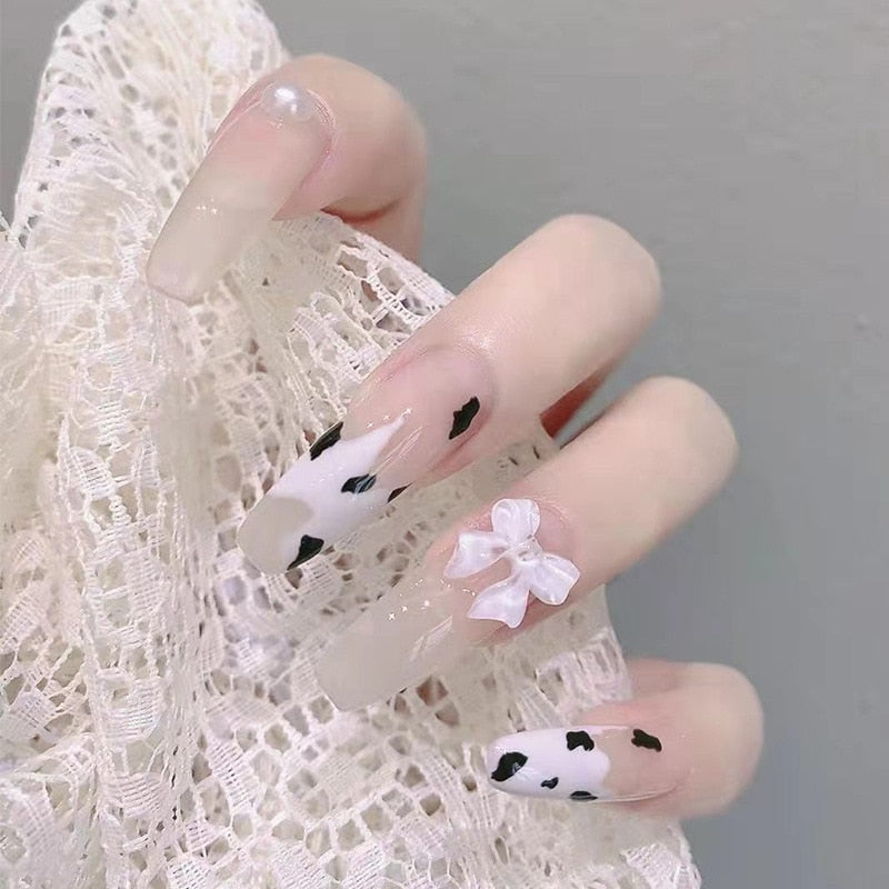 24pcs Bow Love Heart Printed Design False Nails Patch with Glue Women Manicure False Nails Patch with Glue Press On Nails Tips-Nail Inspo