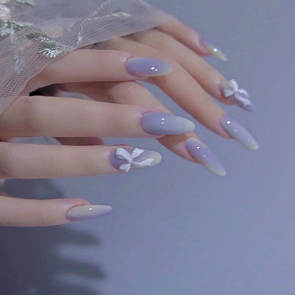 24pcs/Box Detachable Almond False Nails Wearable Purple stiletto fake nails with bow Full Cover Nail Tips fake nail with design-Nail Inspo