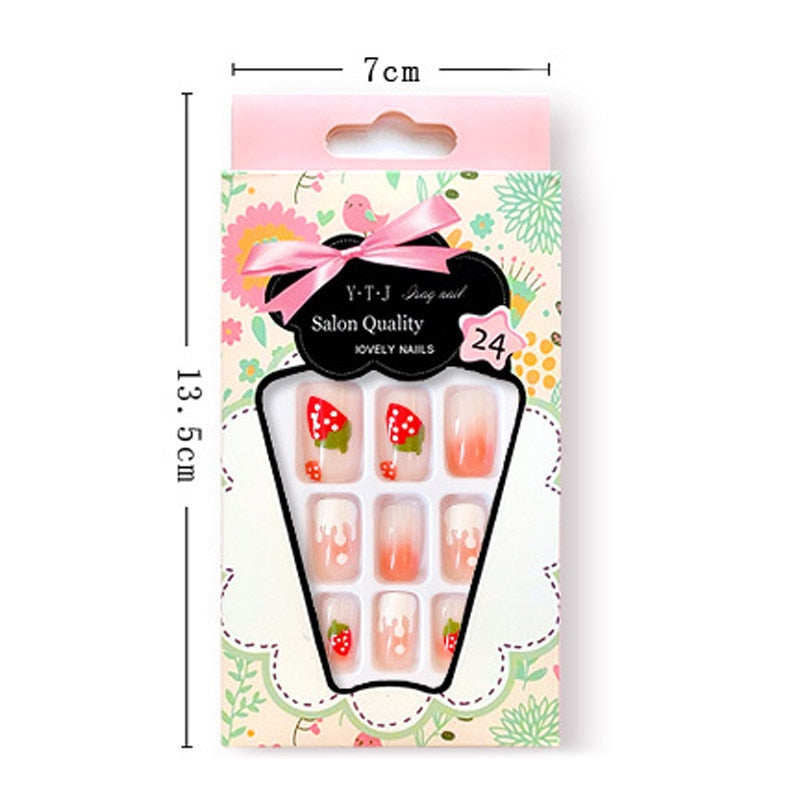 24pcs/box fake short nails with glue round head Finished Nails Manicure Patches Strawberry Patches press on nails with designs-Nail Inspo