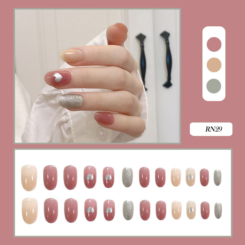 Looks cute on my nails. I had to adjust them according to my nail sizes. The glue fixed them tightly to the nail so far( the second day yet). I applied some top coat for extra shine.