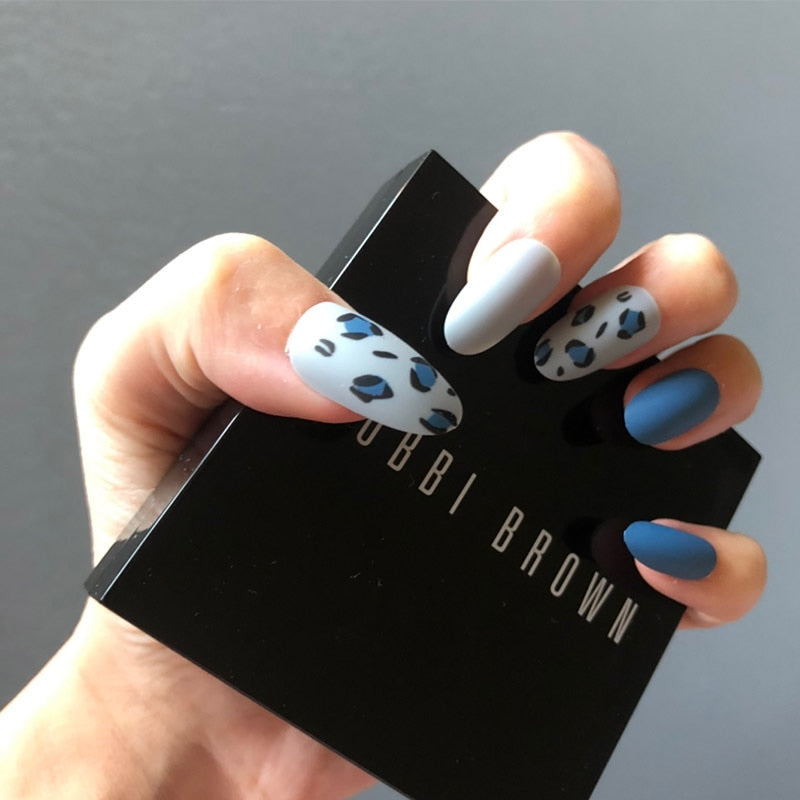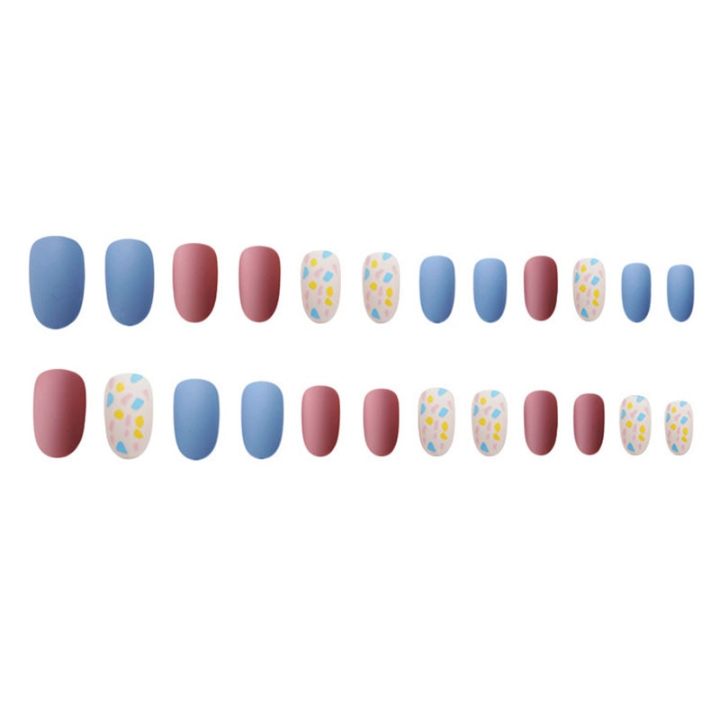 24PCS/box Fashionable Blue and Graffiti Pattern Wearable Fake Nails press on Short oval Head Lady Full Cover Finished Fingernail-Nail Inspo