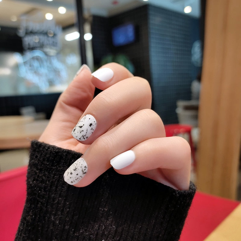 - Choose a suitable size of adhesive stickers or nail glue for your nails and stick it on your nails.