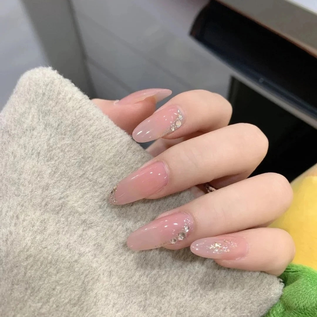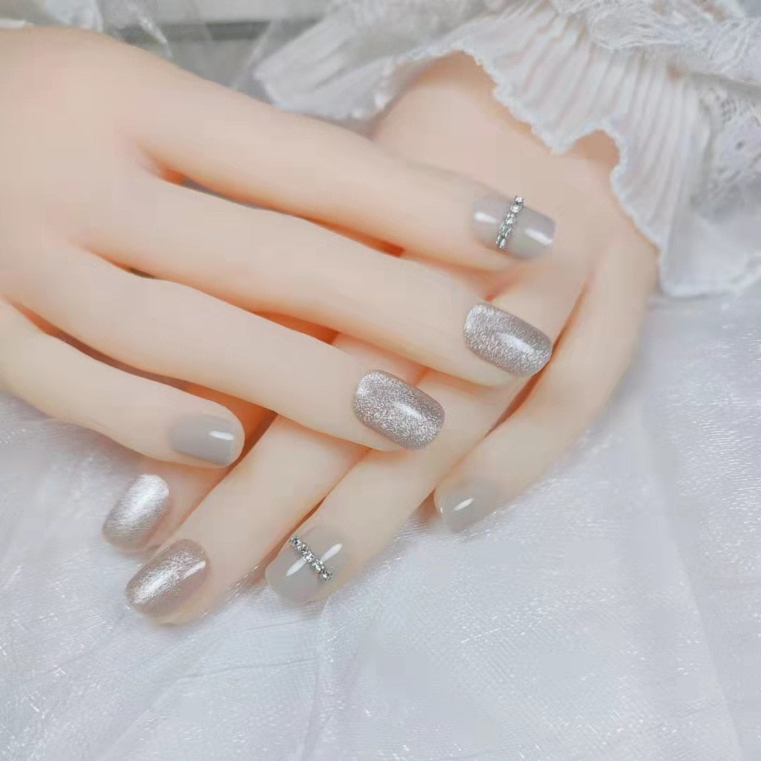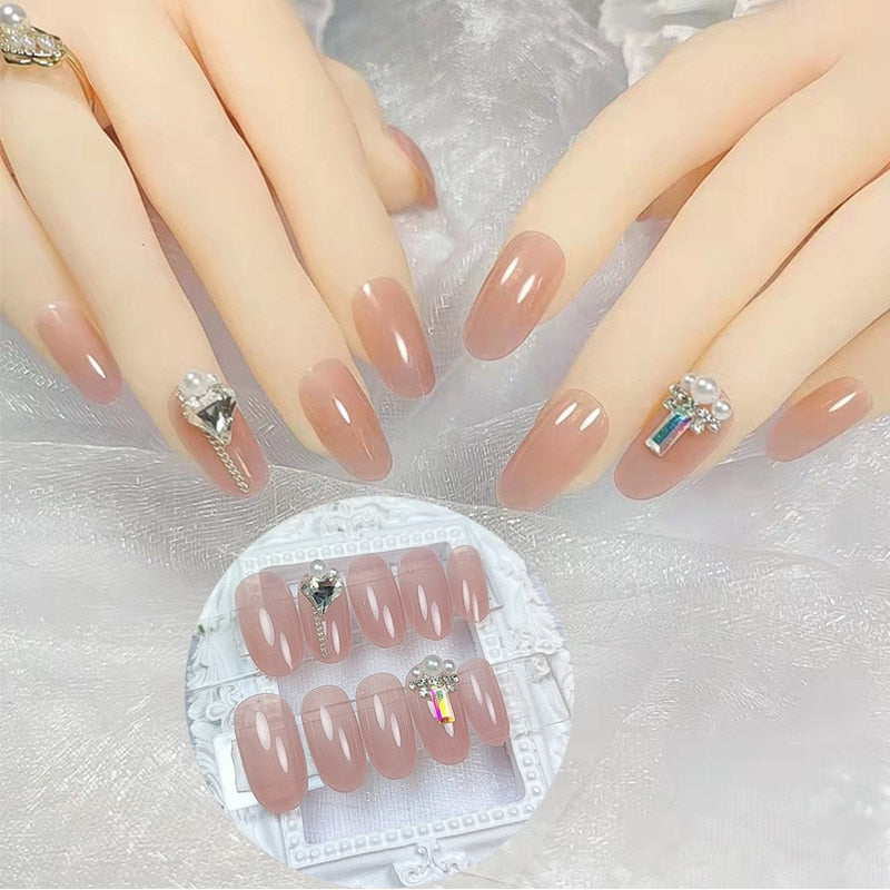 - Choose a suitable size of adhesive stickers or nail glue for your nails and stick it on your nails.