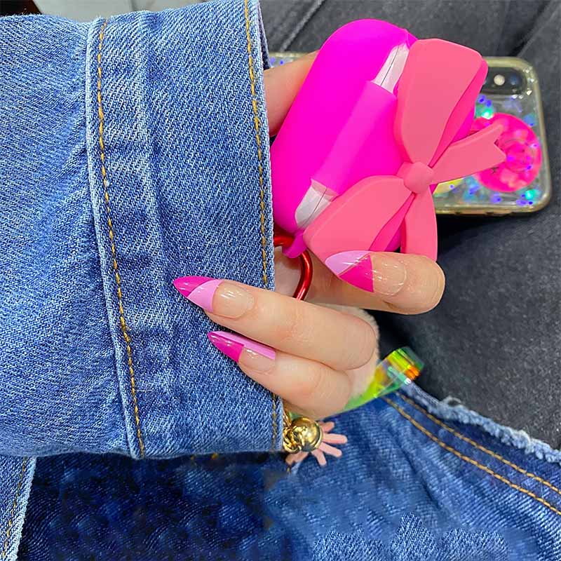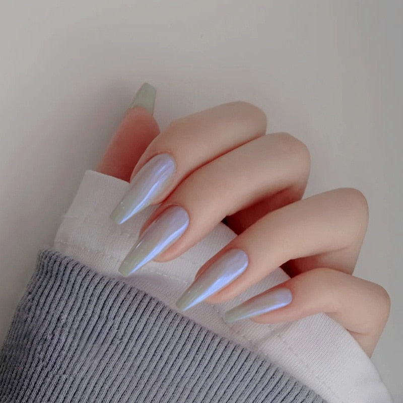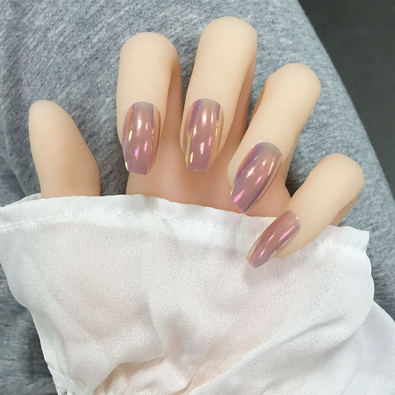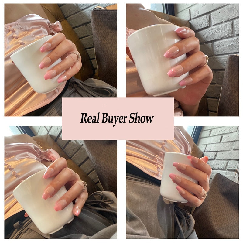 24PCS/box Gradient Color Ballet Med-Length Fake Nails press on full cover Wearing Wearable acrylic nail tips with glue for girls-Nail Inspo