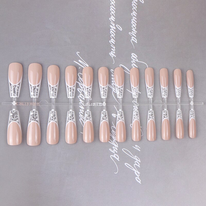24Pcs/Box Heart Long Coffin False Nails Designs Ballerina White Love Pattern Fake Nails Full Cover Nail Tips Press on Nails-Nail Inspo