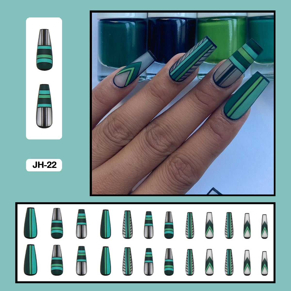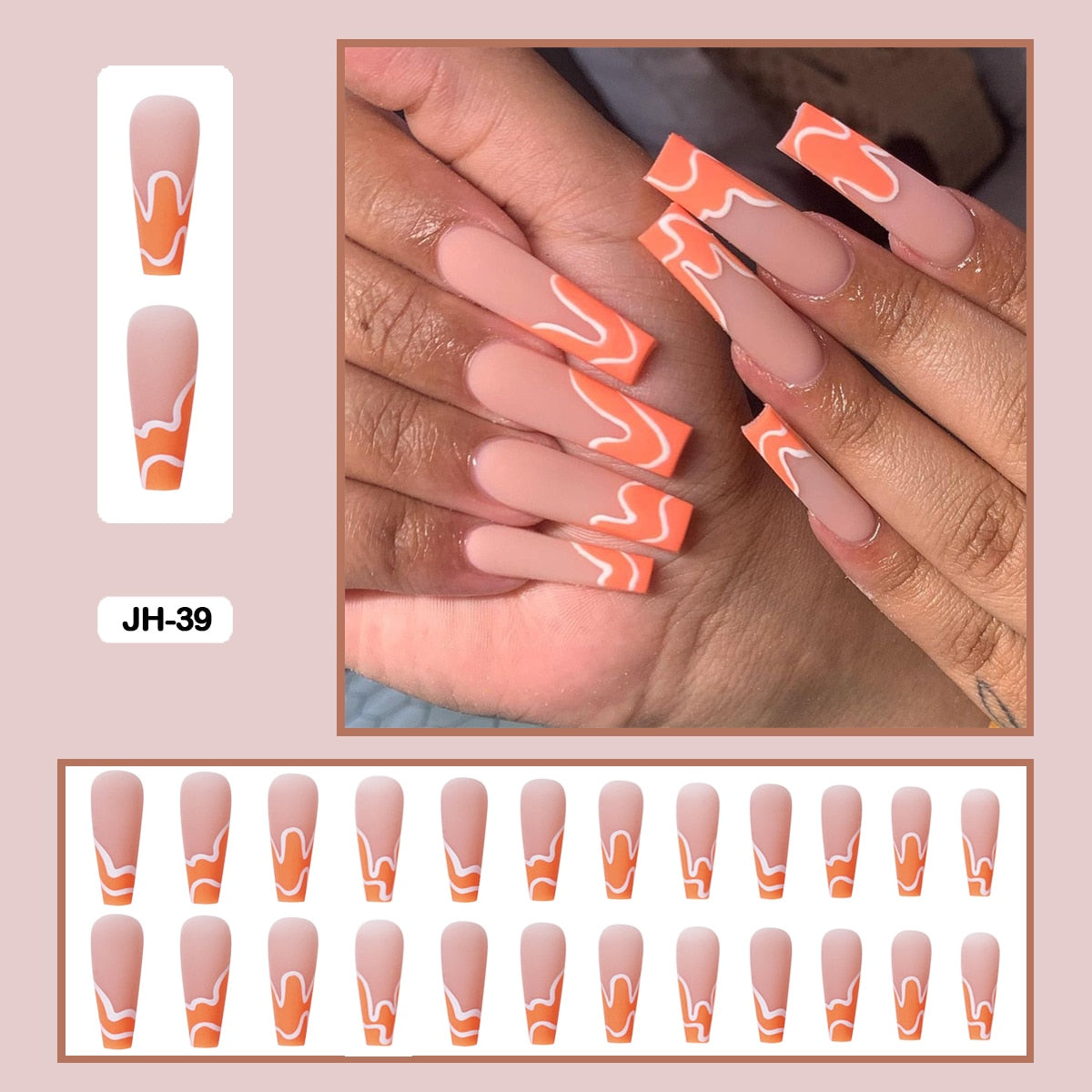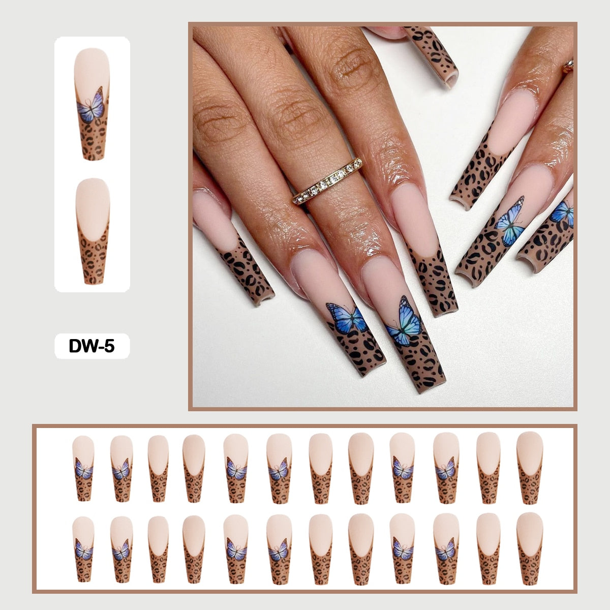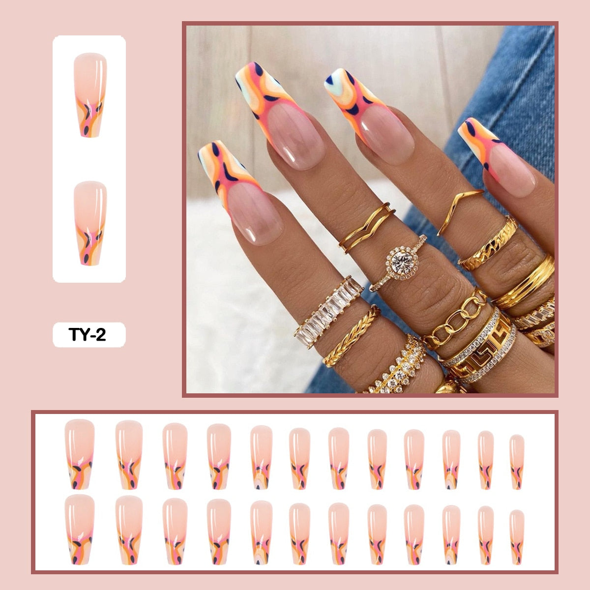 24pcs/box Long Trapezoid Fake Nails Geometric Simplicity Personality Graffiti Animal Pattern Nail Art Nails Press on With Glue-Nail Inspo