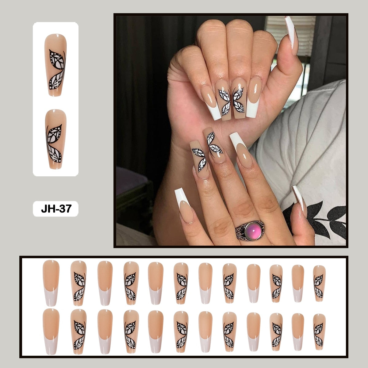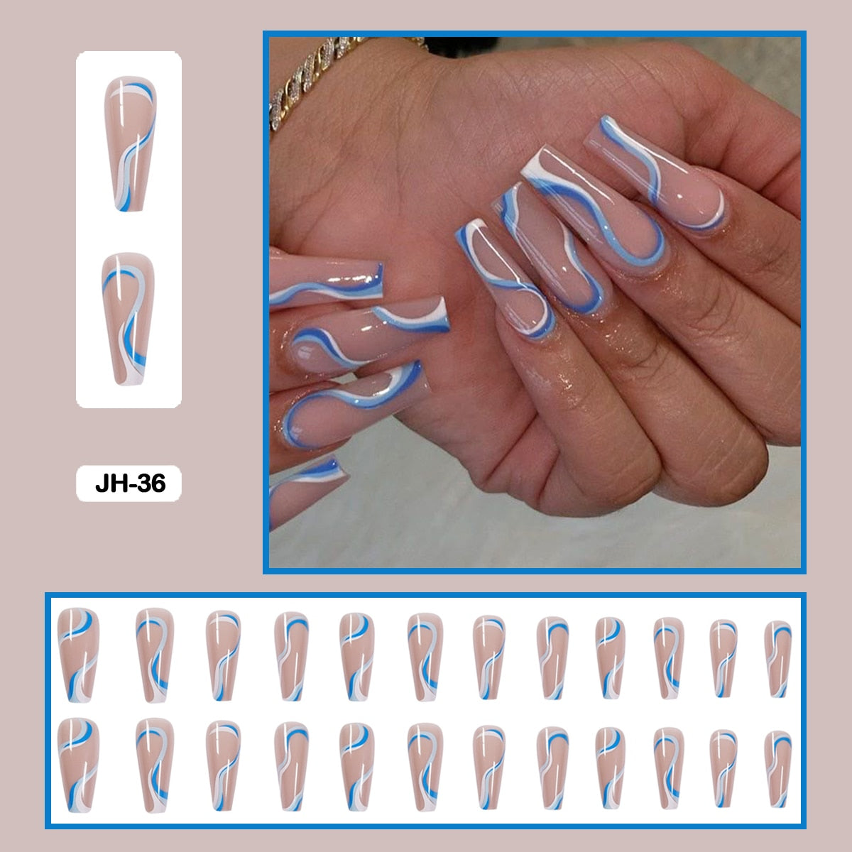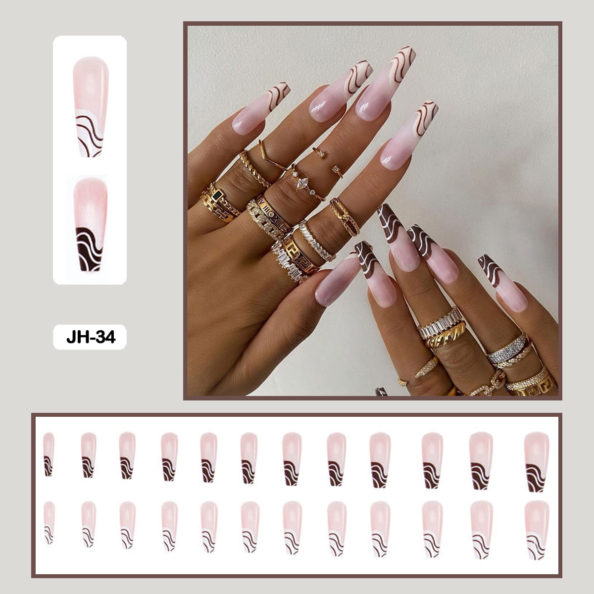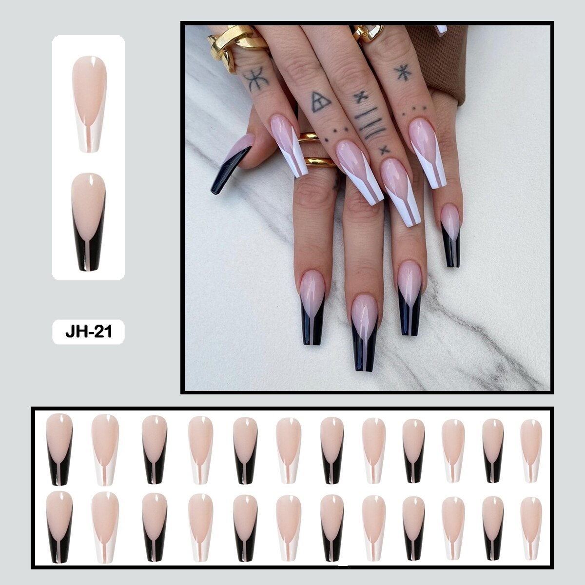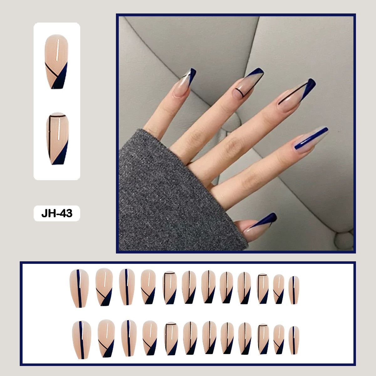 24pcs/box Long Trapezoid Fake Nails Geometric Simplicity Personality Graffiti Animal Pattern Nail Art Nails Press on With Glue-Nail Inspo