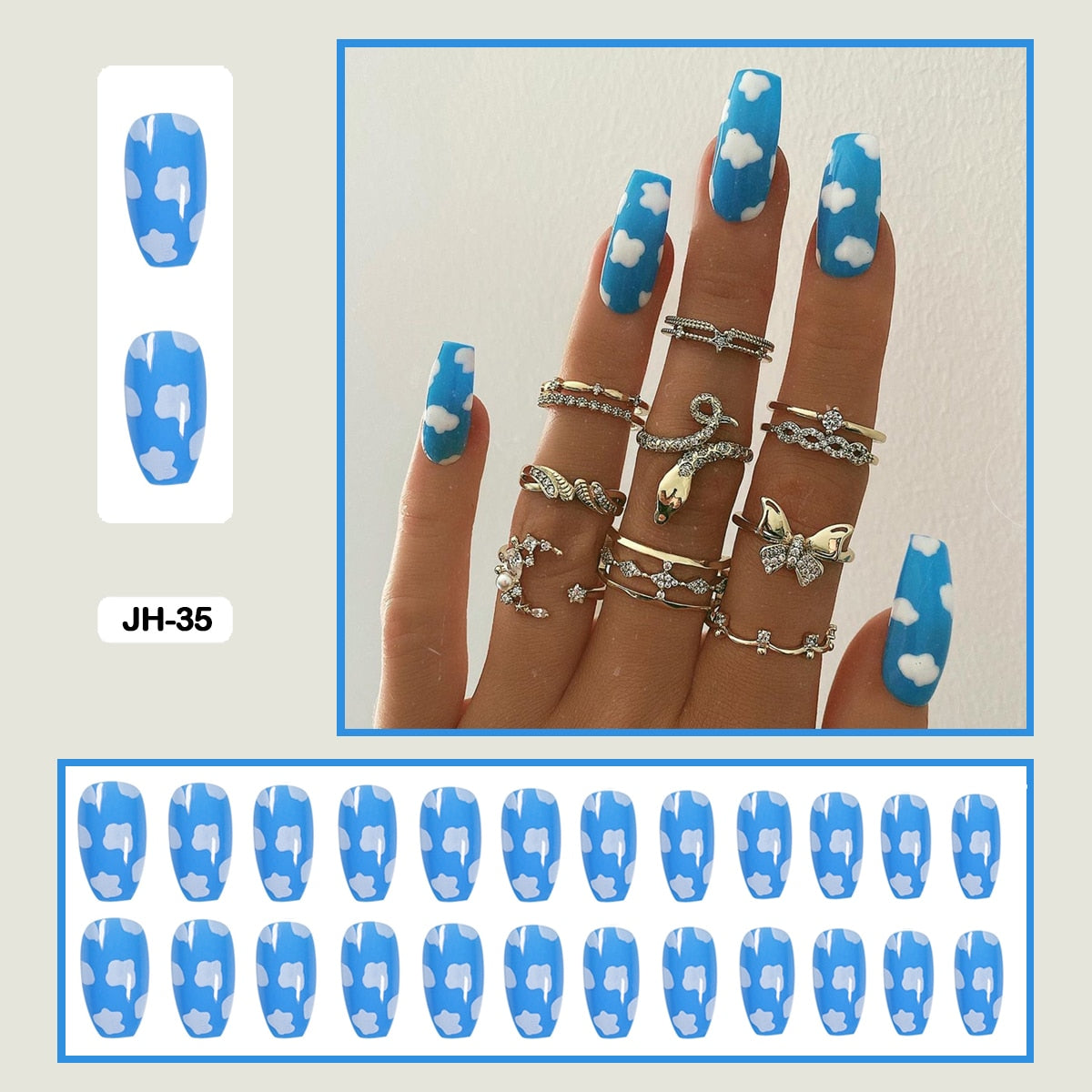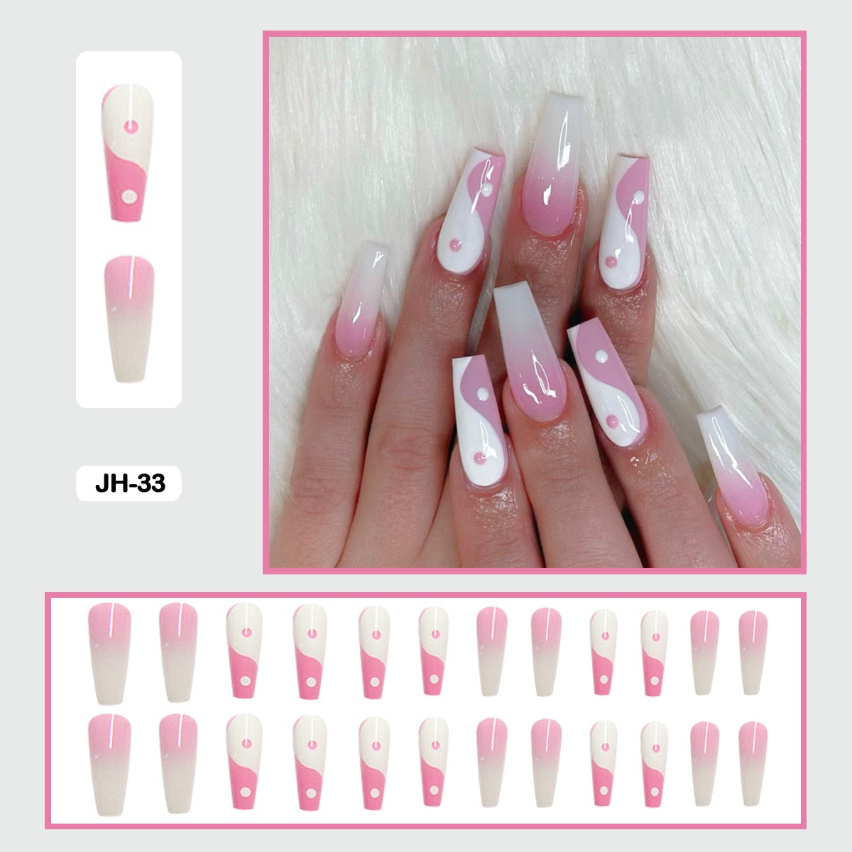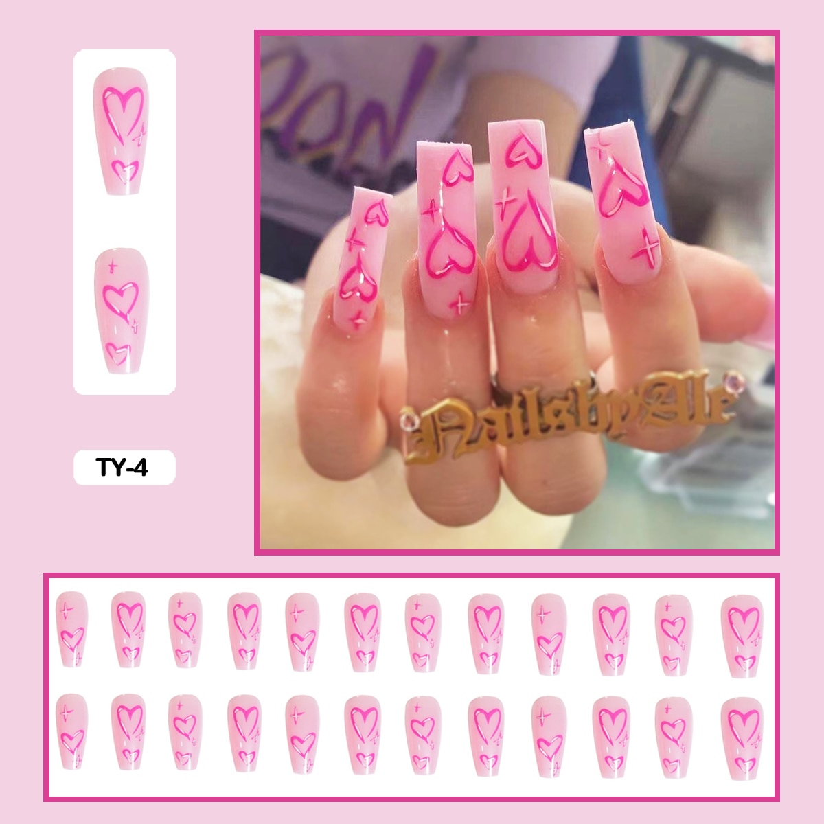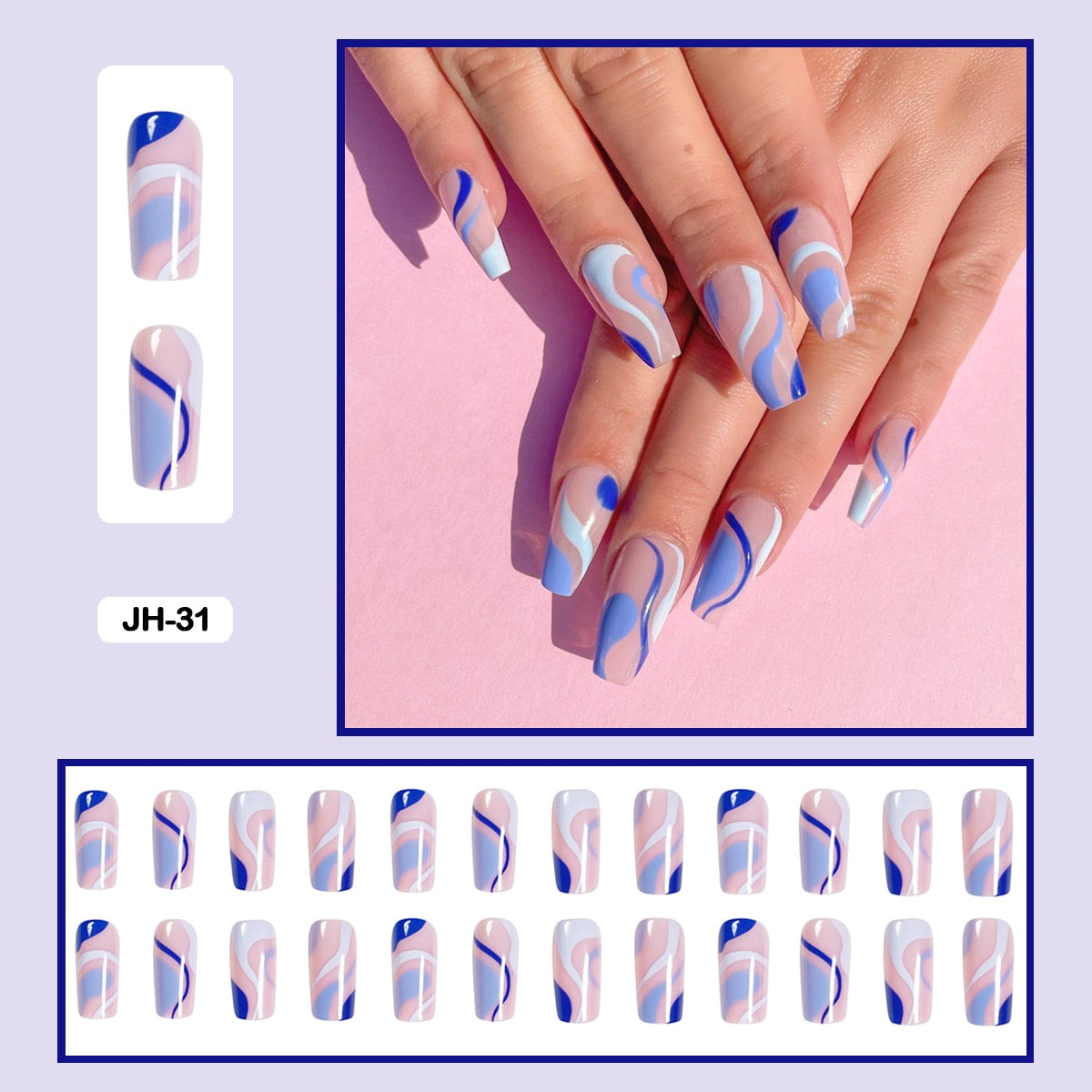 24pcs/box Long Trapezoid Fake Nails Geometric Simplicity Personality Graffiti Animal Pattern Nail Art Nails Press on With Glue-Nail Inspo