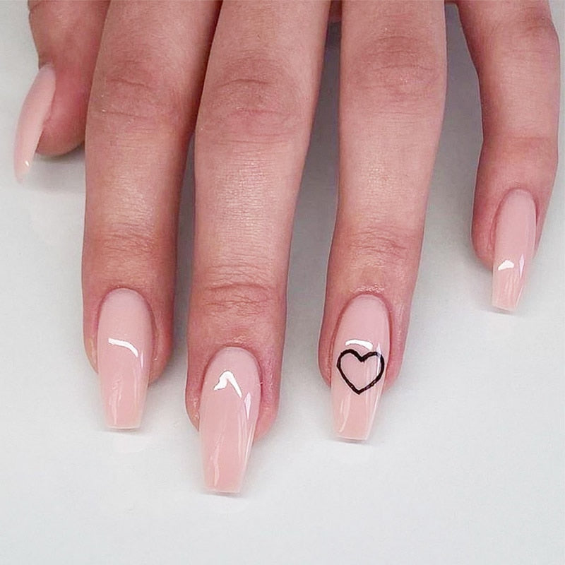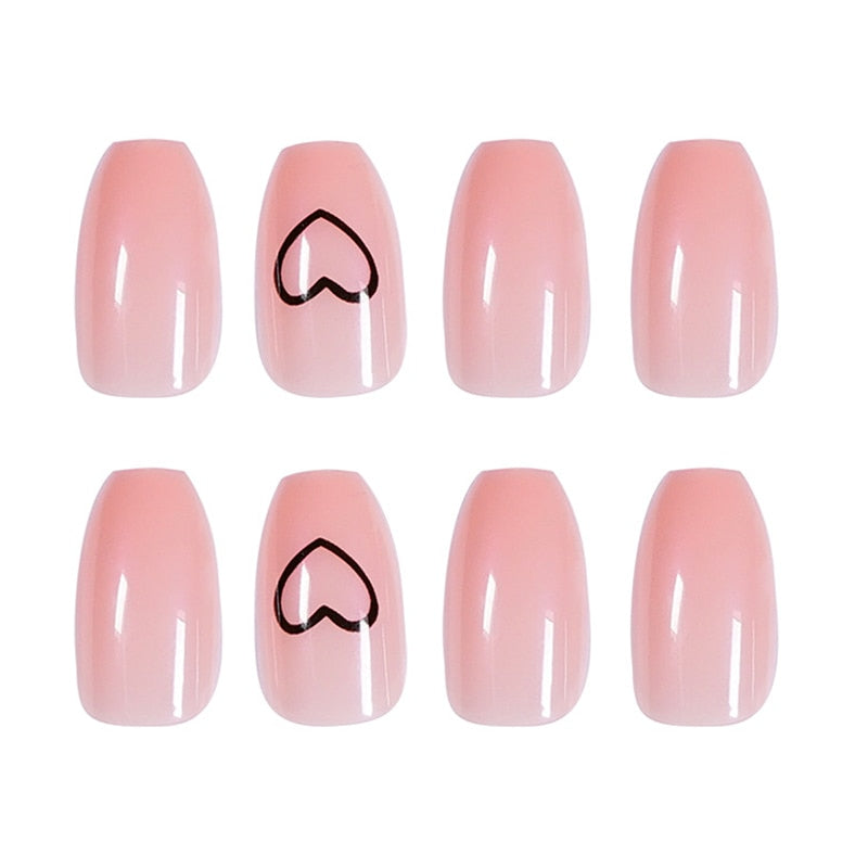 24pcs/box Middle length Ballet nude pink Color false nails with design with heart pattern artificial nails with glue TY-Nail Inspo