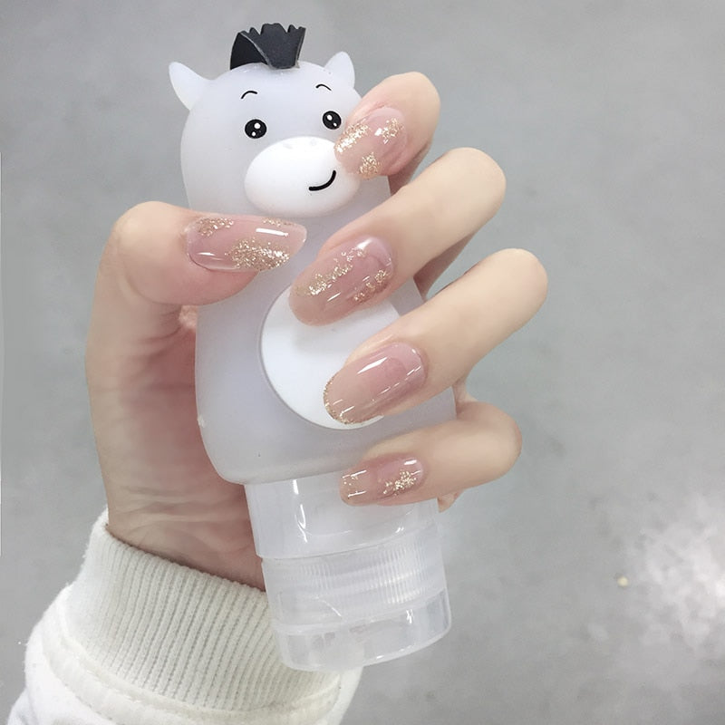 24Pcs/boxed Nude Color Shiny press on nails Women Bride Wearable Disassembly Full Cover Finger Fake Nail with Glue for girl DIY-Nail Inspo