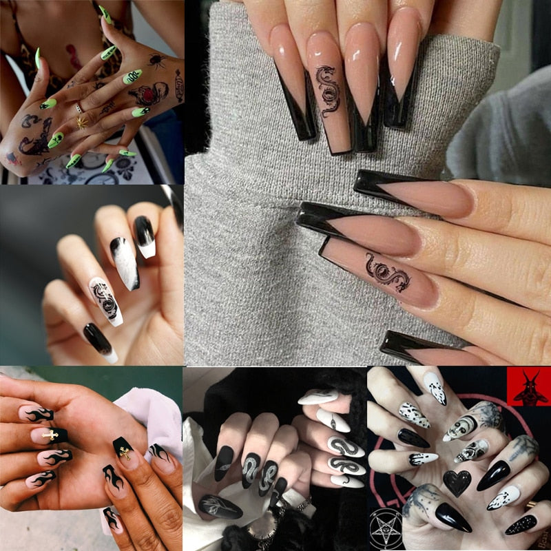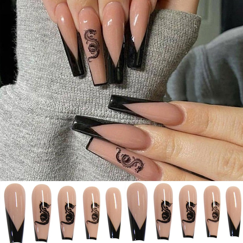 Designs: Full Cover False Nails with Dragon/Snake/Skull