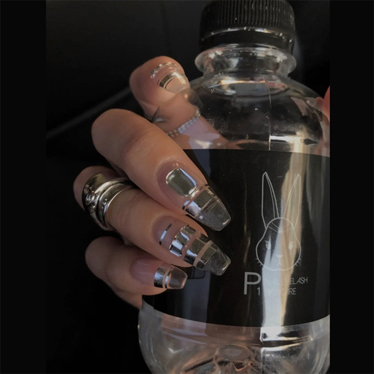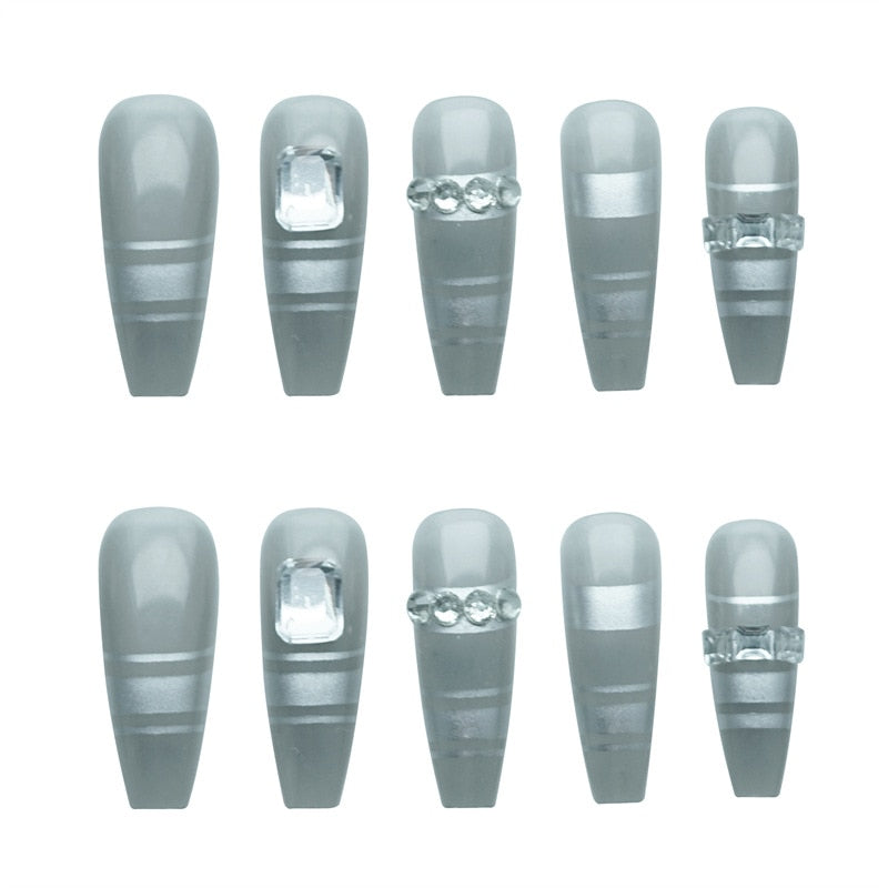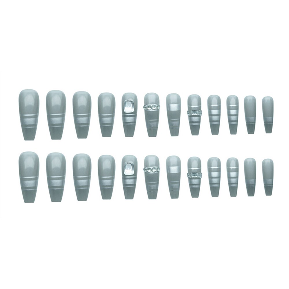 24Pcs Detachable Long Coffin False Nails With diamond silver fake nails with designs Press On Nails French Ballerina Nails-Nail Inspo