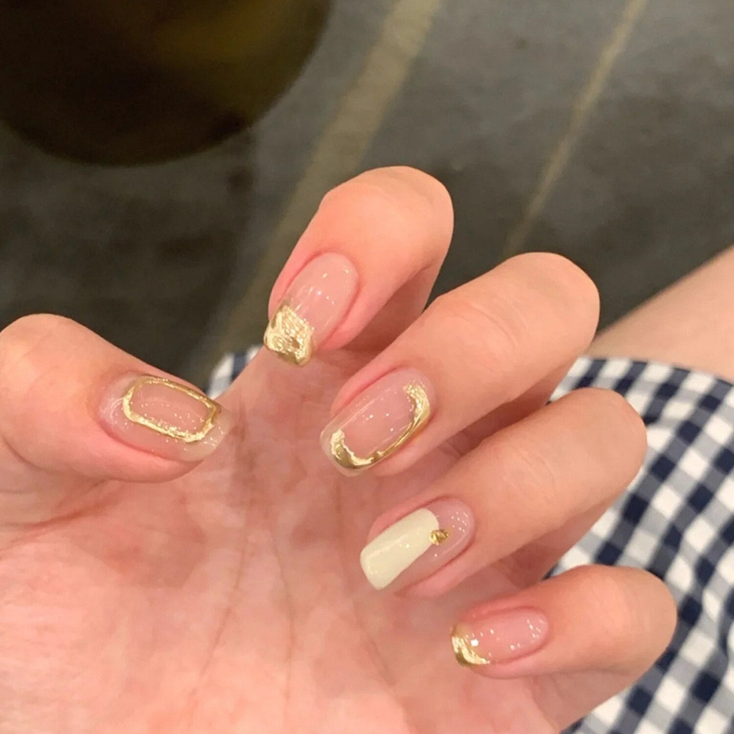 - Choose a suitable size of adhesive stickers or nail glue for your nails and stick it on your nails.