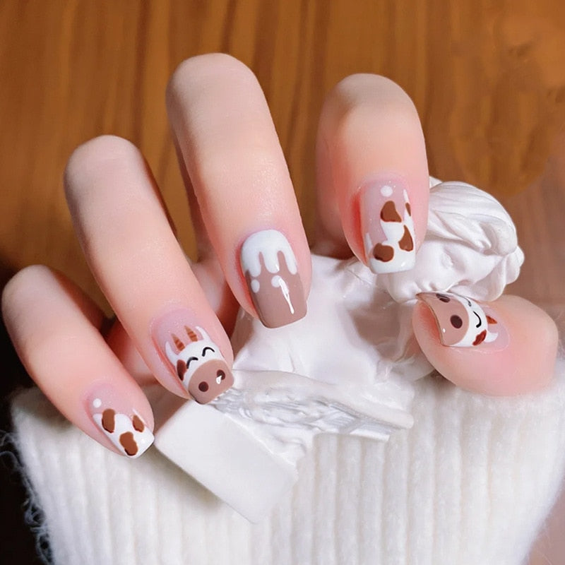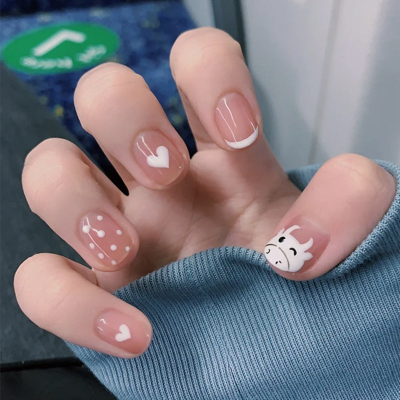 Looks cute on my nails. I had to adjust them according to my nail sizes. The glue fixed them tightly to the nail so far( the second day yet). I applied some top coat for extra shine.