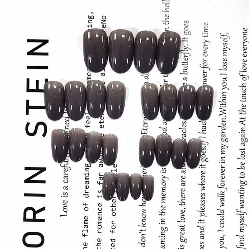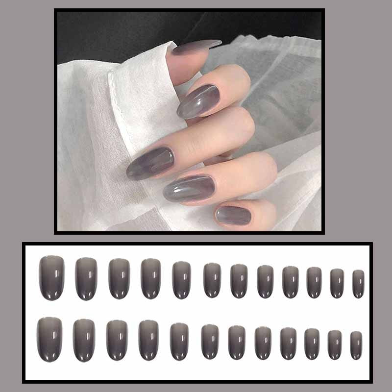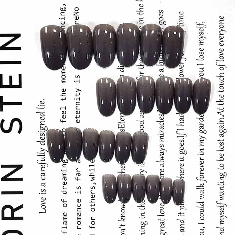 24pcs fake nails french manicure Mid-length round head jelly black Manicure patch fake nails with glue-Nail Inspo
