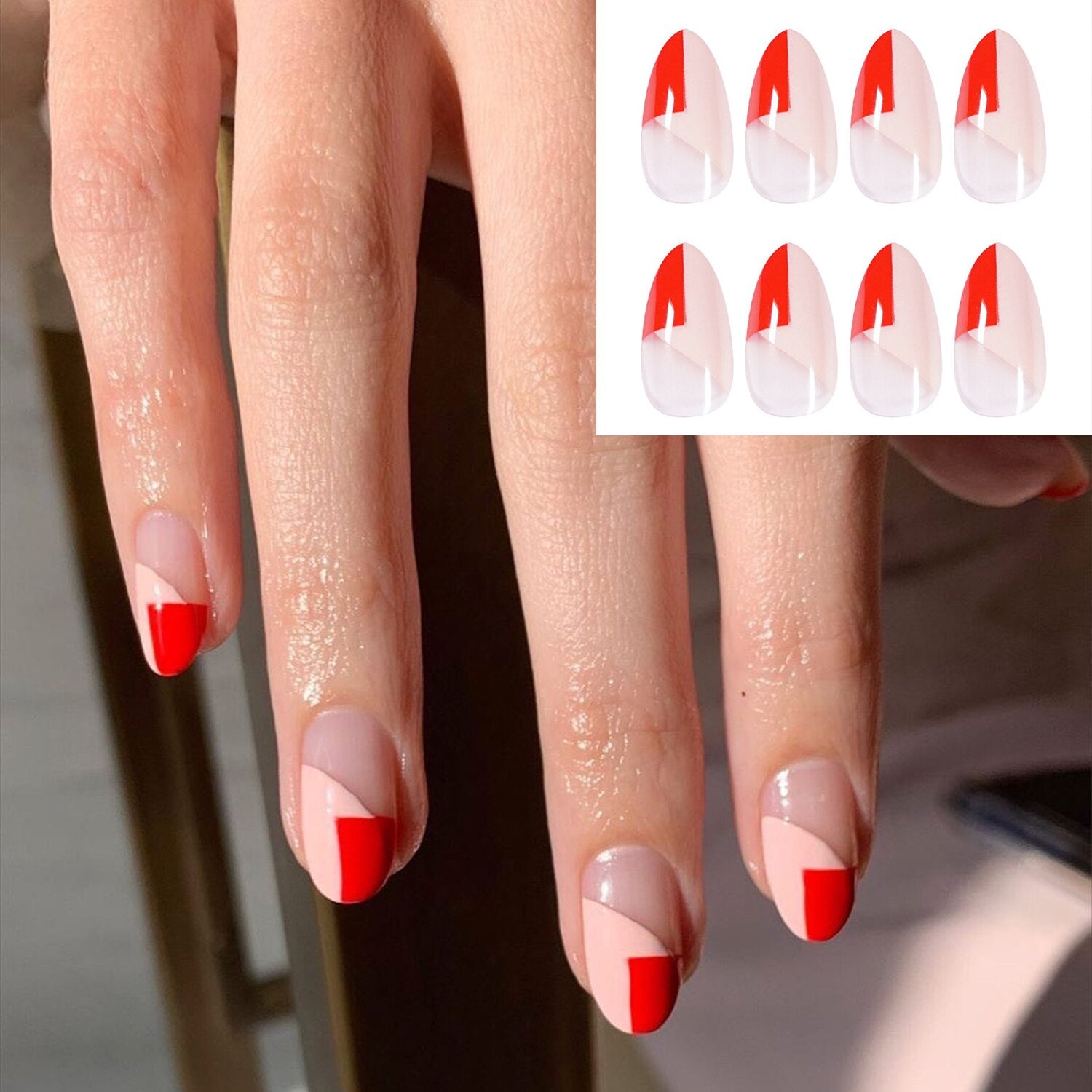 24pcs fake nails french manicure Water red hypotenuse wear nail finished acrylic products wearable full cover fake nail tips-Nail Inspo