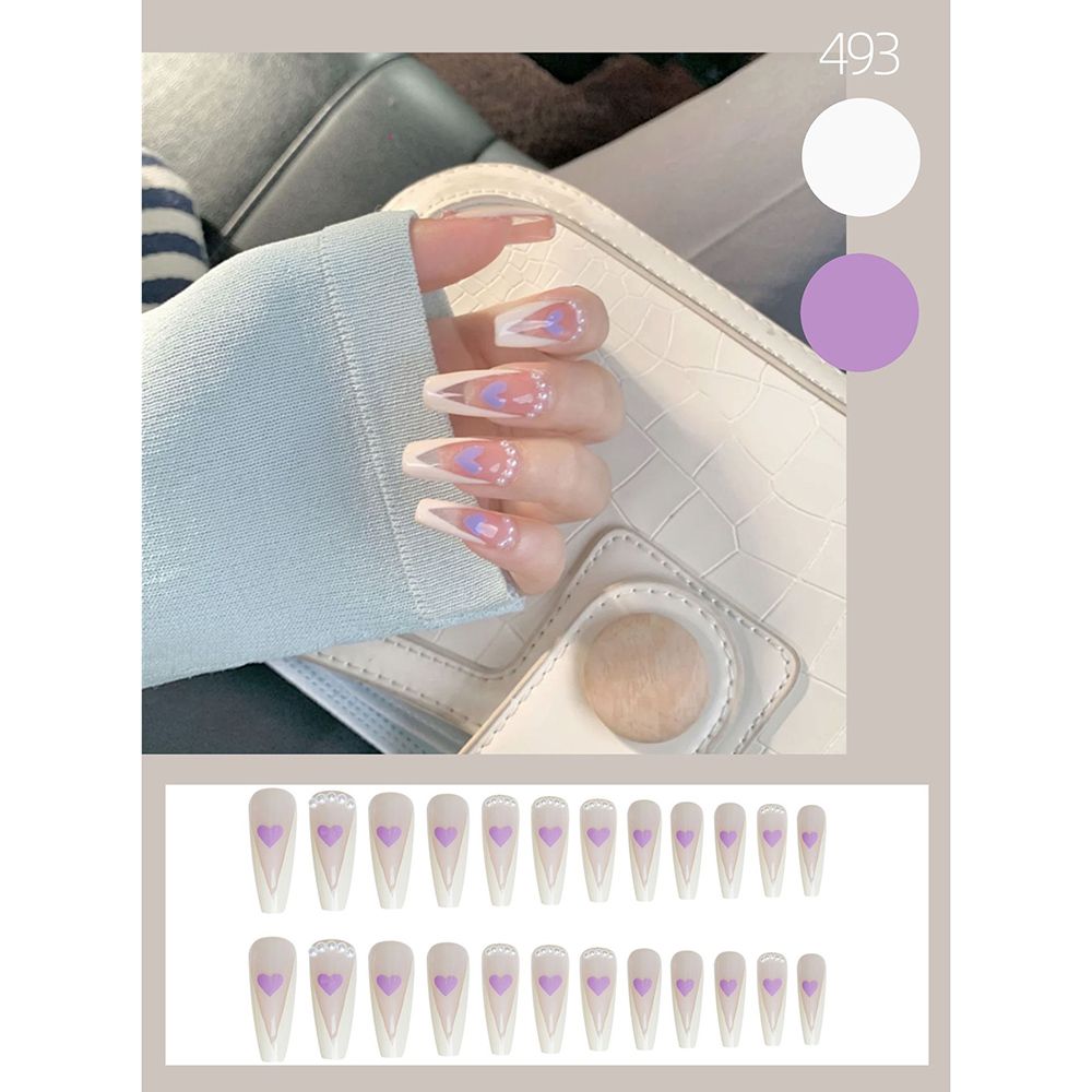 24pcs Fake nails with designs Super Long Ballerina False Nails Wearable Coffin french Nails Full Cover Nail Tips Press On Nails-Nail Inspo