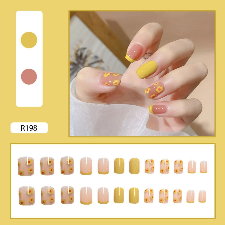 24pcs Fake Nails With Glue Crystal Cherry Short Style Square Head Nail Sticker Finished Artificial Nail Press On Nails Design DL-Nail Inspo