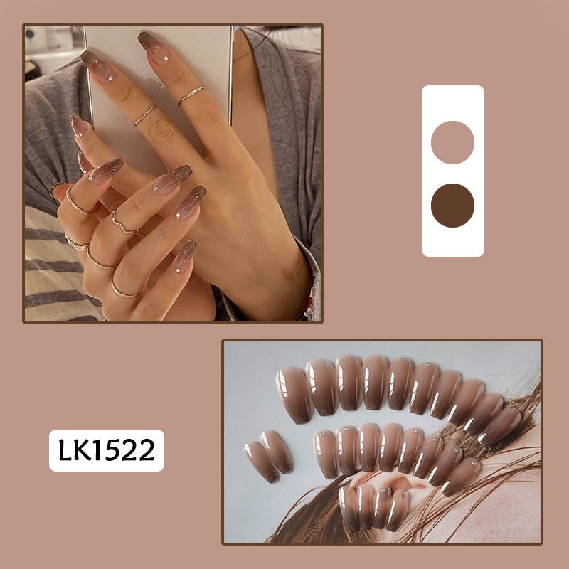 24pcs Fake Nails With Small Diamond Glue Type Long Paragraph Gradient Color Fashion Manicure Patch False Nails Press On Coffin D-Nail Inspo