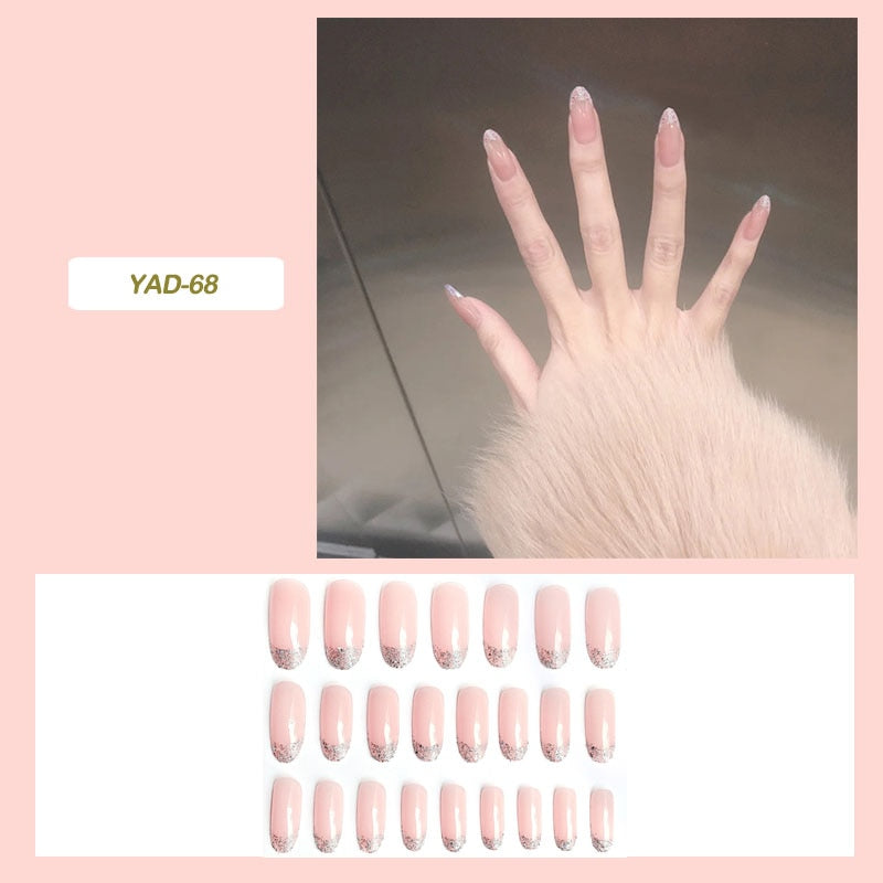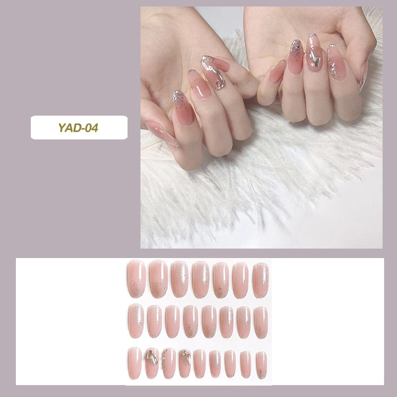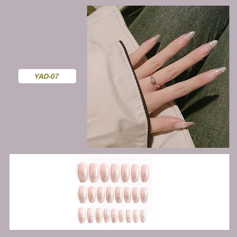 24pcs fake stick on nails Shiny Long Paragraph Fashion Removable Manicure Patch press on nails long stiletto full cover for girl-Nail Inspo